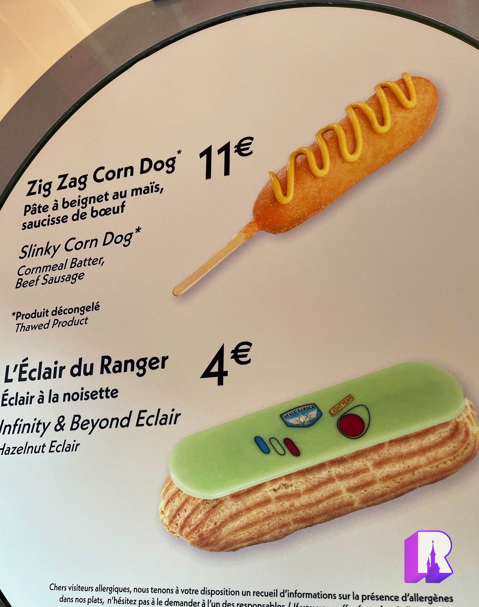 The pricing team clearly doesn’t know what a corndog is and also how big it is as it was priced originally like a full hot dog! It’s nowhere as big or remotely similar and it seems they have realized their mistake and actually LOWERED the price. Never seen this happen before! The corndog went from €11 to €8 and in the meantime the eclair went up €1 from €4 to €5. It’s quite big and filling so still and okay value for a themed snack at Disney Park.