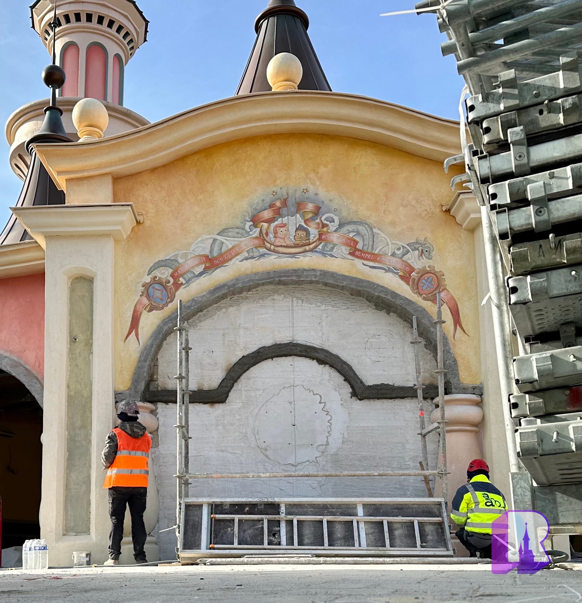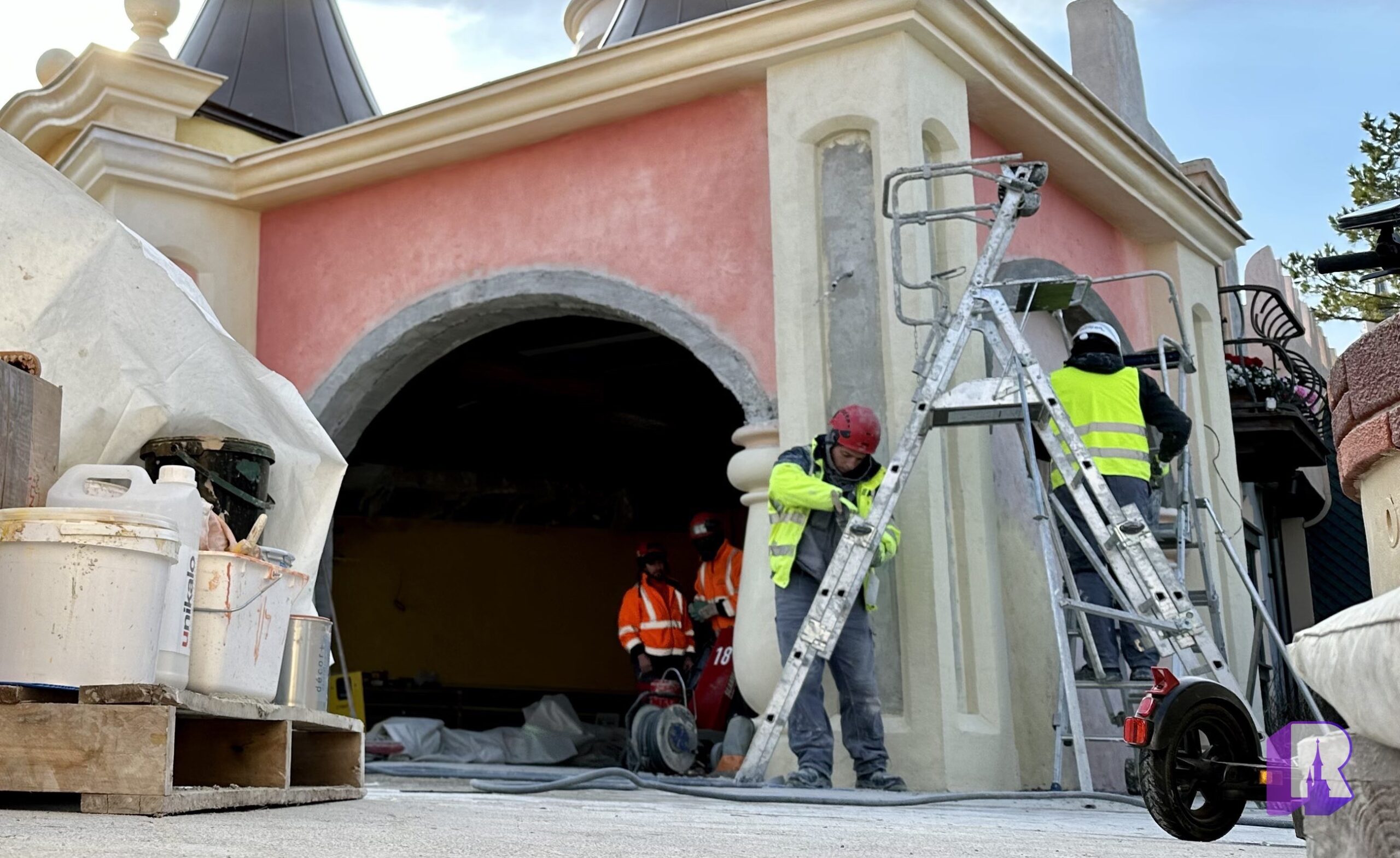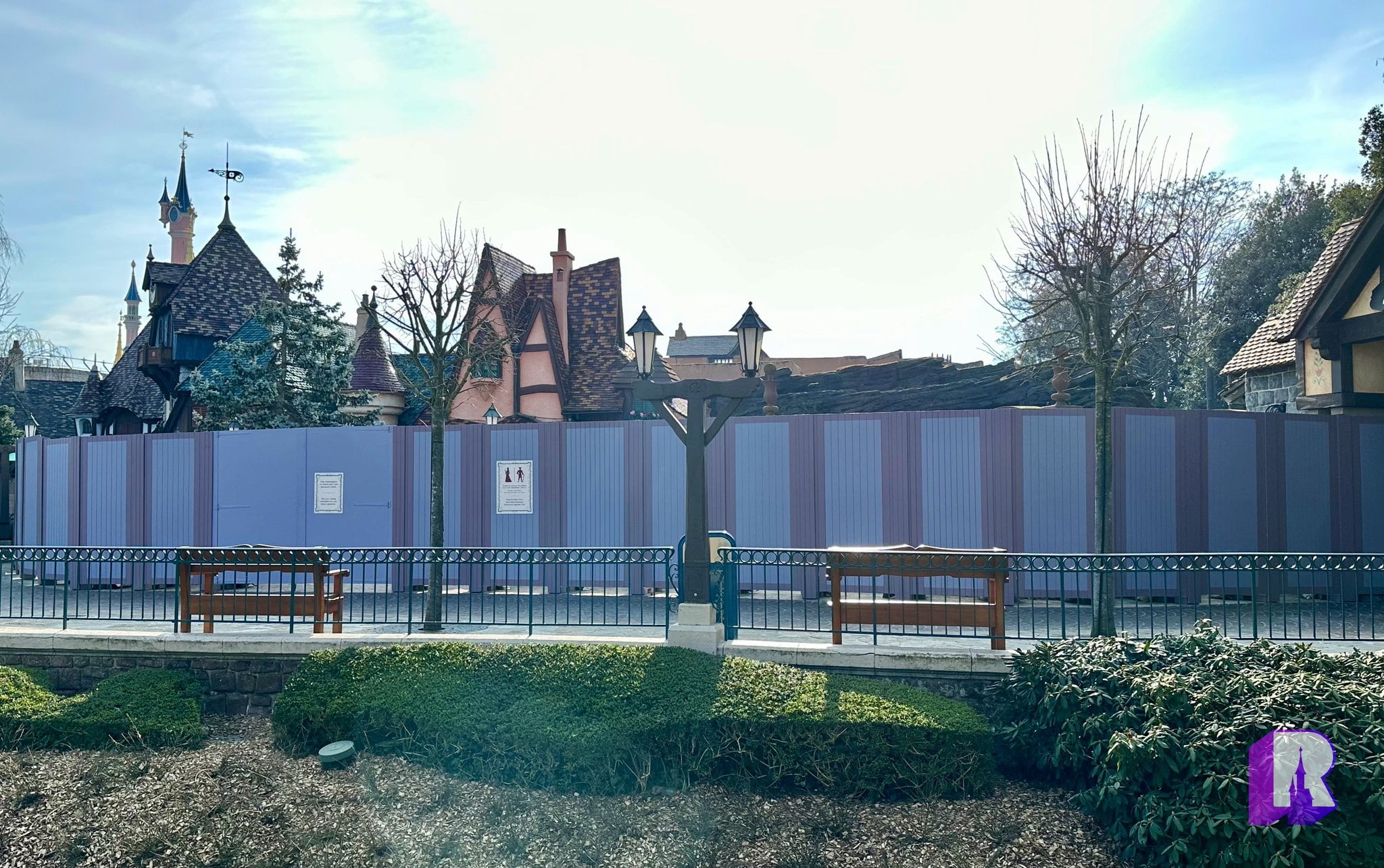 Also in Fantasyland, the entire area around the Chalet de la Marionette restrooms is behind walls, likely for an upgrade to the restrooms and repaving of the area.