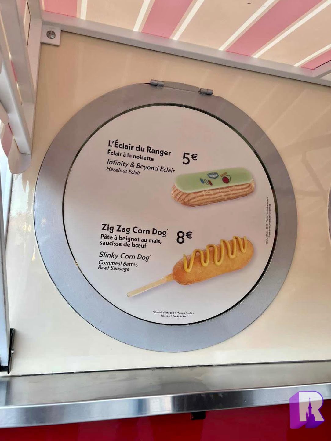 Over at Worlds of Pixar, two new snacks have arrived at the food truck. A hazelnut filled eclair and a corndog.