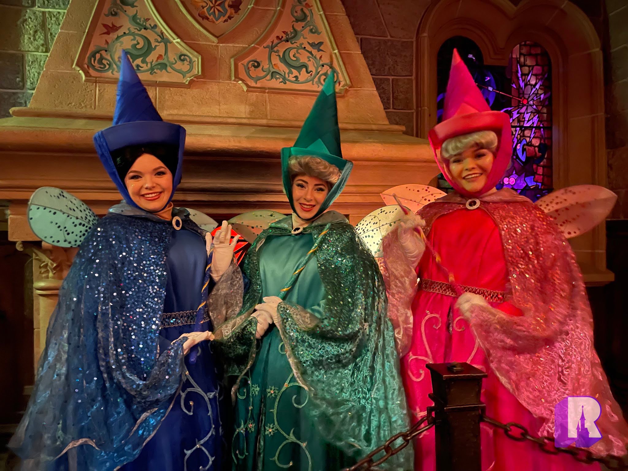 At Sleeping Beauty Castle, a particularly lovely setup was Aurora, Philip, Maleficent and the 3 Fairies inside the Sleeping Beauty Castle Walkthrough on the first floor.