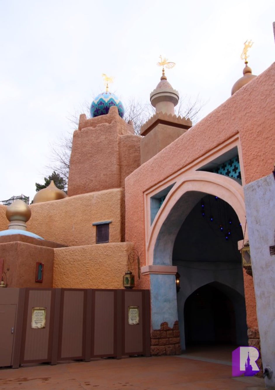 Crossing over to Adventureland, refurbishment continues in Adventureland Bazaar, including at the entrance of the land and on top of Agrabah Café, which is still closed until June.