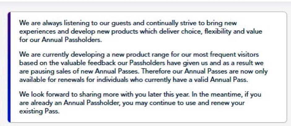 On Thursday morning an official message was released explaining that the sale was suspended while the teams were working on an new set of annual passes to be released later this year.