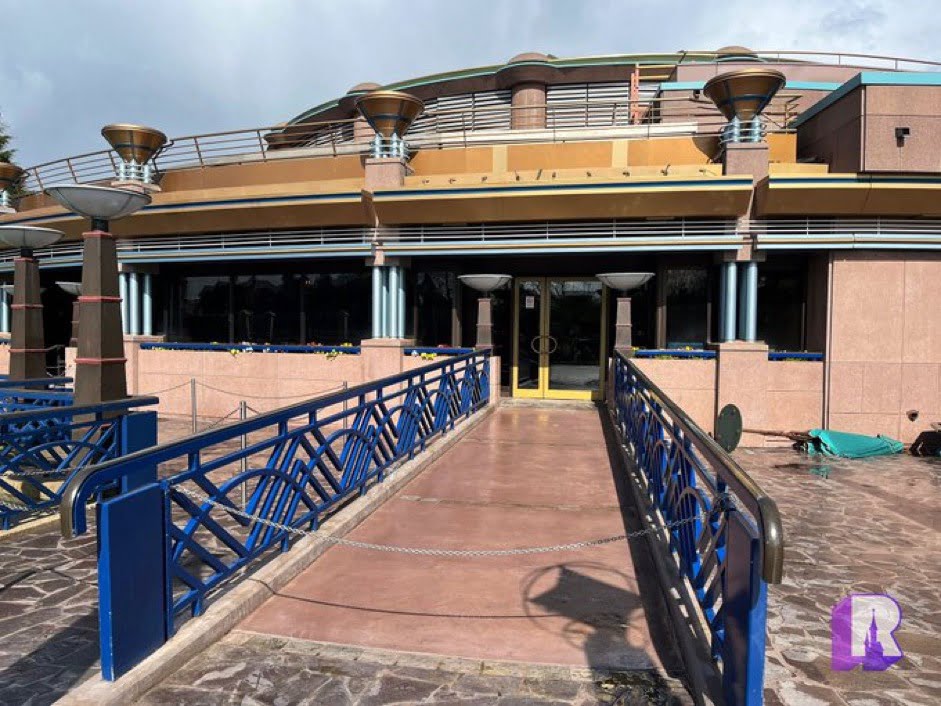 Tables and chairs have been removed from the former fast pass distribution location at Tower of Terror since the food chalets have also been removed because, well .. Walt Disney Studios Park really has too much seating (sarcasm).
