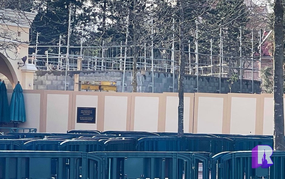 In Station Plaza, some of the pillars have been wrapped up and walls are moving quickly in order to continue the repaving project of that area. The old 1992 painted concrete is being replaced by proper high-end pavers, continuing a trend that started years ago in Fantasia Gardens, and is continuing here, in Fantasyland and other parts of the Resort.