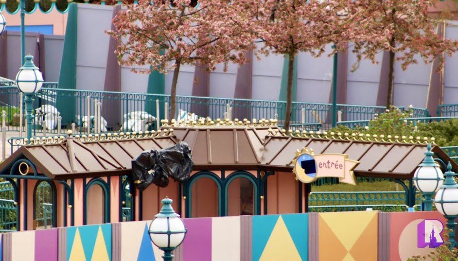 Over at ‘it’s a small world’, the entrance sign and digital wait time screen has been installed. However the Disney Premier Access sign has now been covered with garbage bags – possibly because we keep taking photos of it.