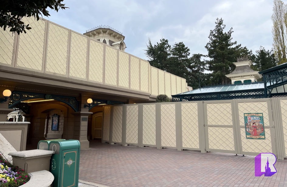 Walls have moved again in Station Plaza for the next phase of resurfacing. As a result Salon Mickey – the shareholders lounge – is closed. They’ve also added walls on Main Street Station to hide the works.