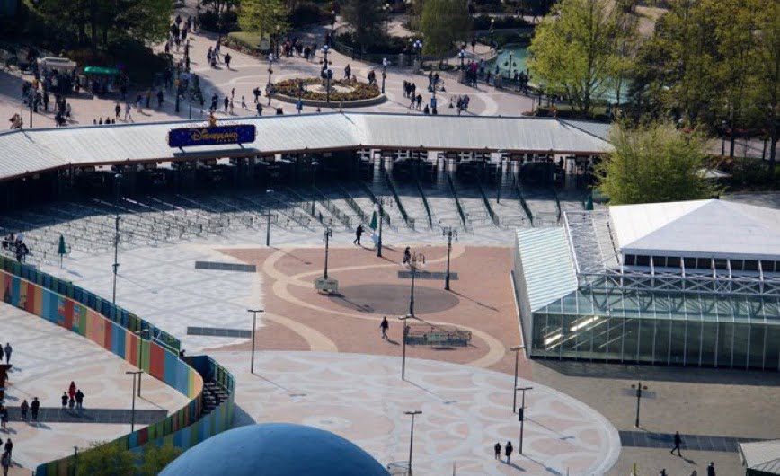 Over at Walt Disney Studios Park the former Toon Studio photo backdrop has been coerced in a “Blending Blue” tarp.