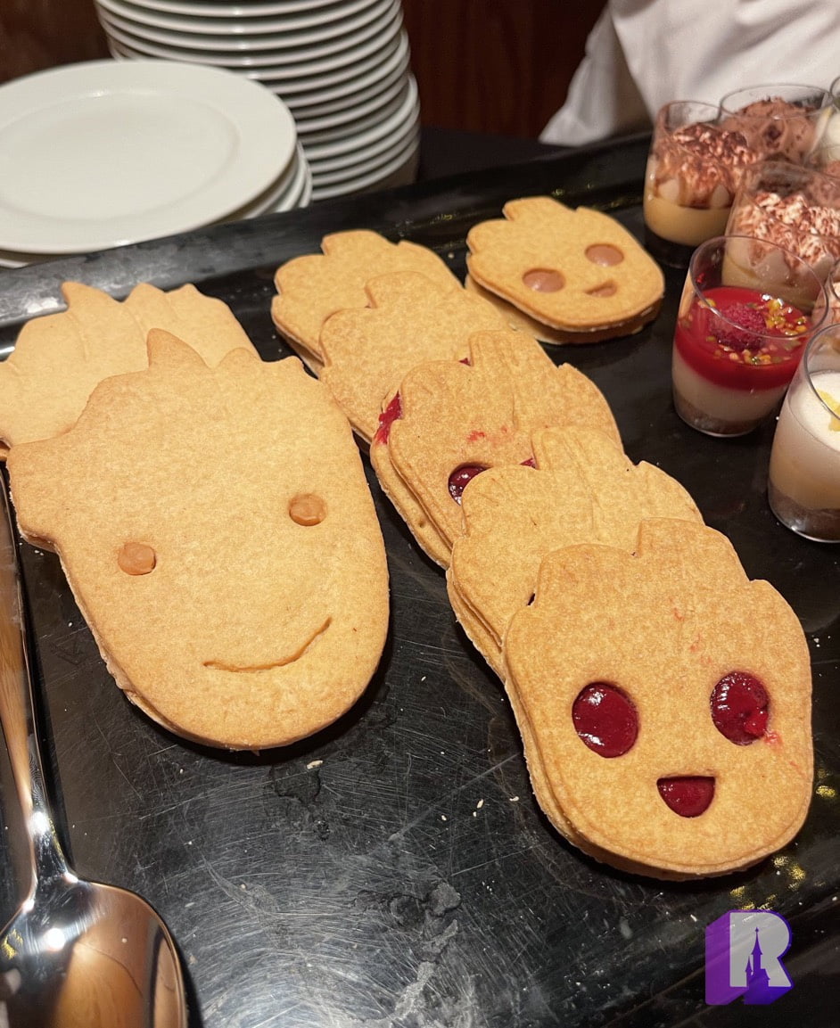 Dinner was of course served, inside Studio 1, and featured some fun Groot item: a focaccia and cookies of Groot… through the ages!