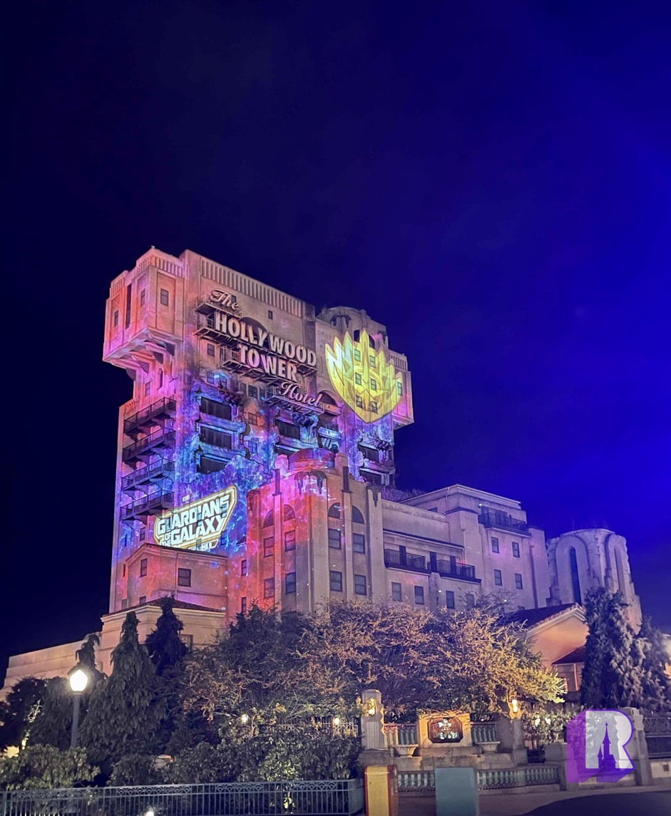Tower of Terror was projected on with the Guardians emblem and the logo of the film… temporarily don’t you worry!