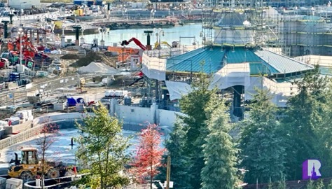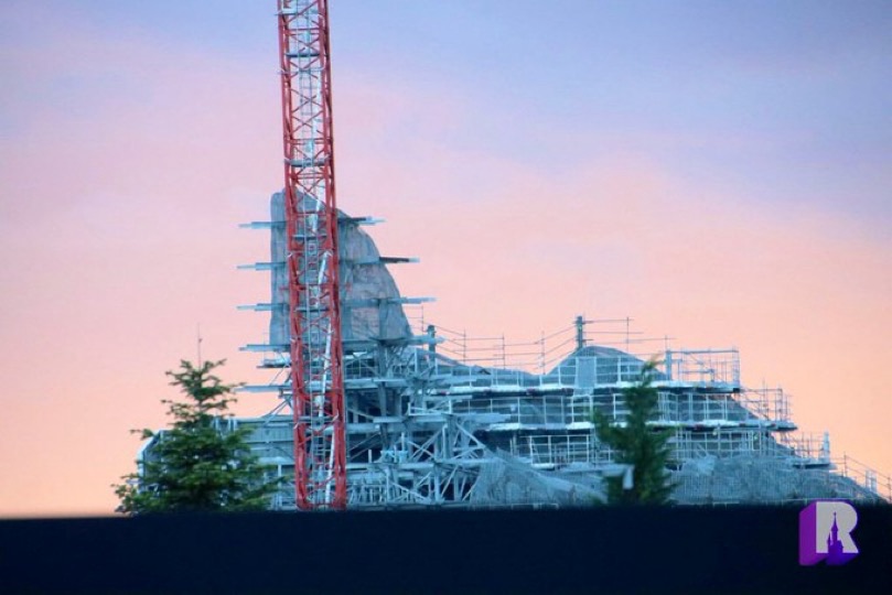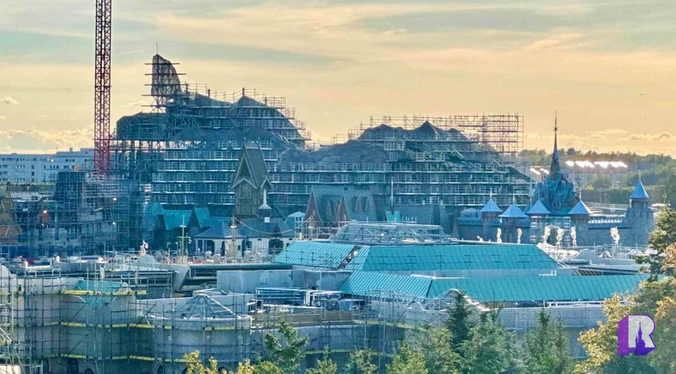 This week Walt Disney Imagineering Paris shared an inside look at the installation of the North Mountain peak which will host Elsa’s Ice Palace. This was also a chance to see the Arendelle facade a bit closer.