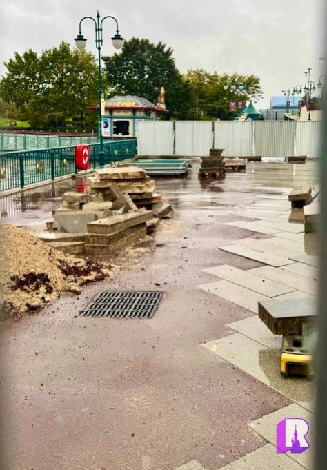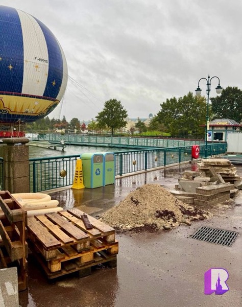 At Disney Village, repaving is progressing towards Lake Disney with a new section closed off. Access to Disney Hotel New York – The Art of Marvel and Panoramagique remains open.