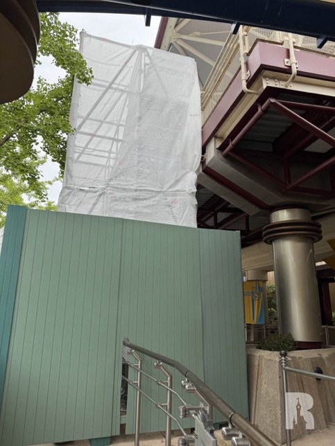 Over in Discoveryland walls are down at the back of Space Mountain, revealing part of the new maintenance bay and access gate.