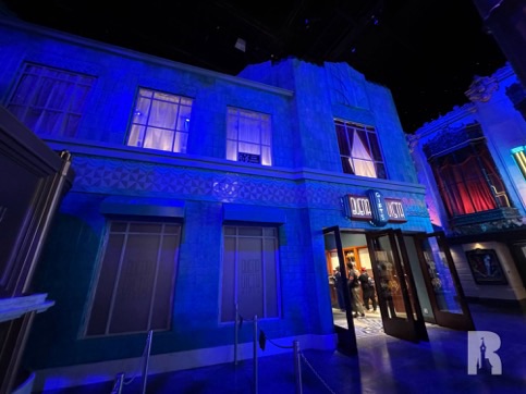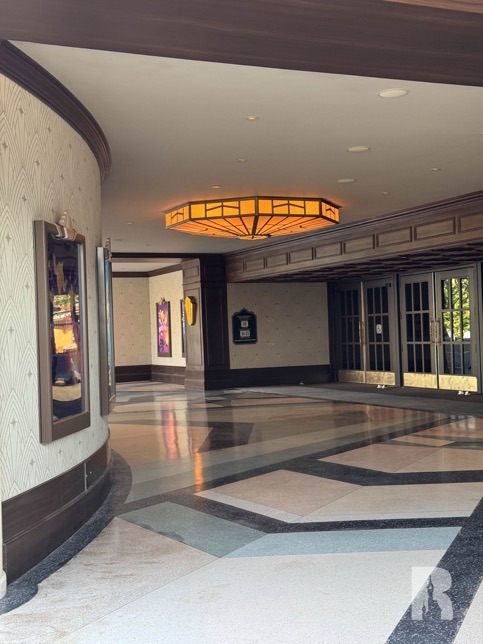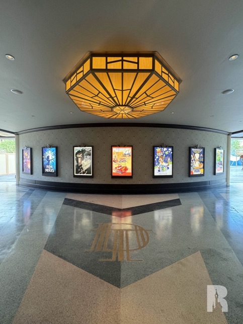 Once you’ve passed the Disney Theater doors, a new vestibule splits guests left and right. It represents not only the lobby of the theater but also is a block for the light coming from the outside.