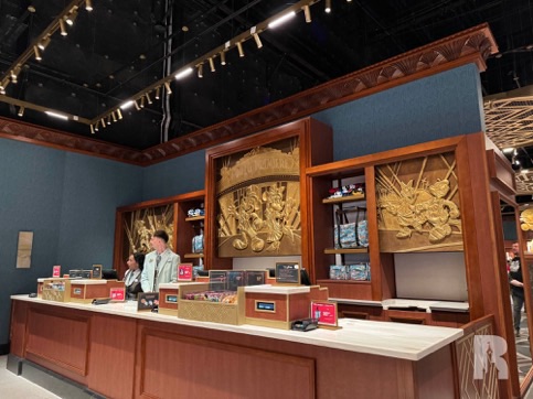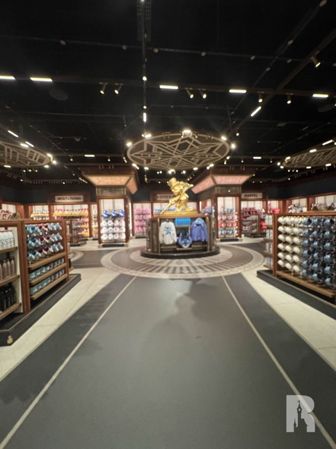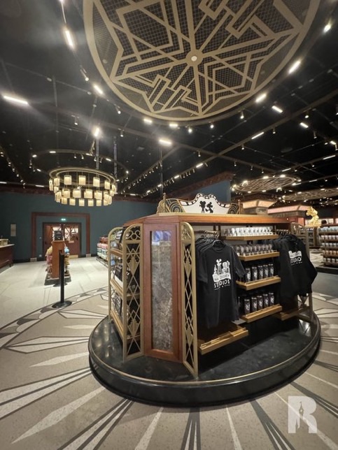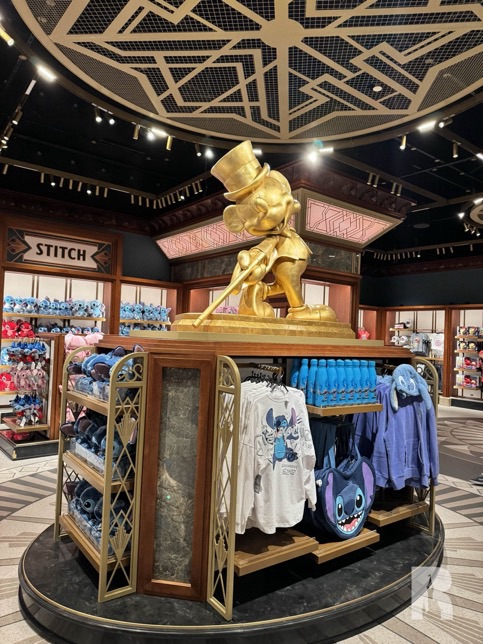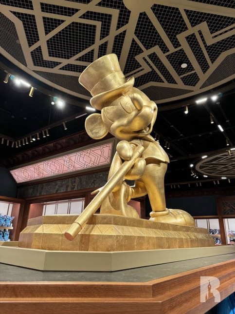 It’s not to say the shop doesn’t feature some nice finishes. The furniture is nice, the wood carvings are lovely, there’s a fancy gold Mickey statue. It’s just sad the illusion is ruined as soon as you look slightly up. The flows and register locations have been optimistes and it’s otherwise a lovely shop to browse.