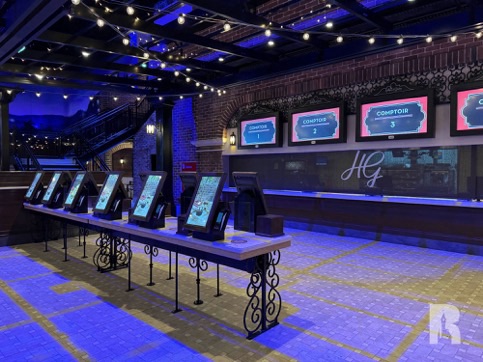 The venue is heavily pushing touch screen order (not mobile order) with dozens of kiosks and a screen system to annonce the orders.
