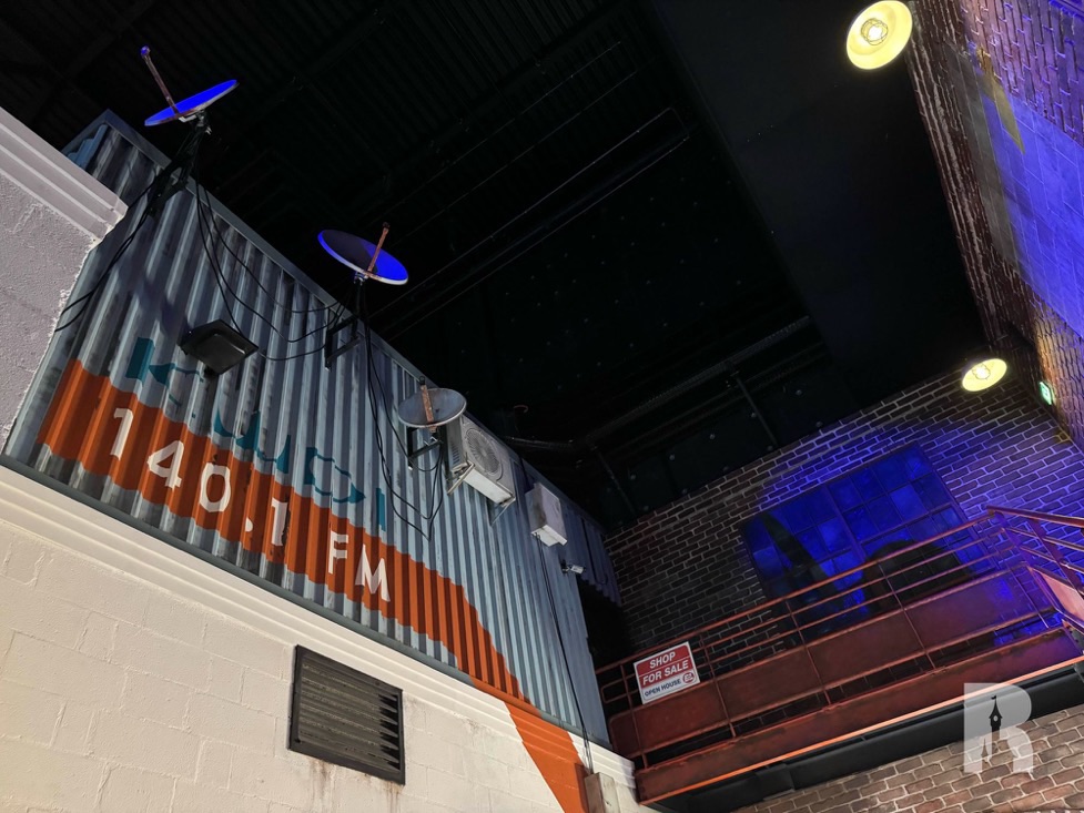 Over by the restrooms, the theme is “street” with some posters on the walls and right above, a radio studio “KWDI” 140.1 FM – imagineering fans will recognize all the references. A super cool nod!