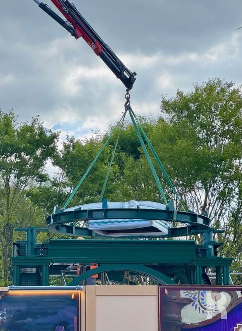 The big news on construction this week at Disneyland Park is that the Casey’s Corner terrace is finally done. It’s not yet open to Guests but should be in the next weeks. Design wise it will take some time to get used to- and there are more finishing touches to be applied – but overall it’s not shocking and blends okay on Main Street. It’ll provide some much needed additional covered seating for this inexplicably popular food joint.