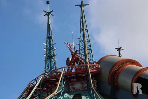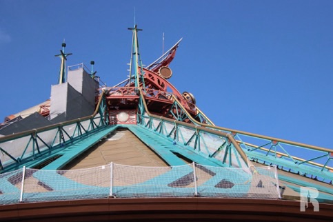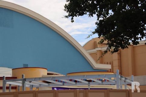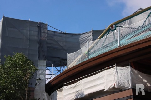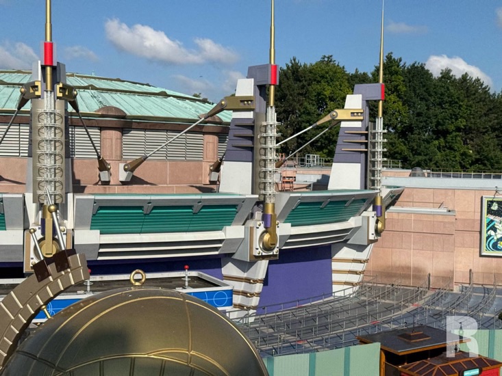 We start at Space Mountain this week, where all the spires have now been stripped. A new structure in the same “vibe” as the previous setup will be installed soon.