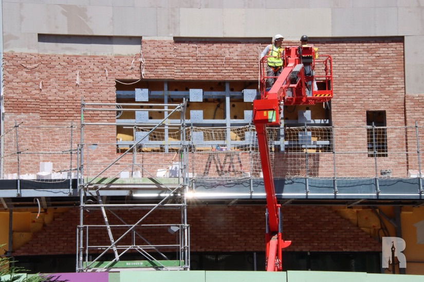 Next up – Disney Village where the Sports Bar facade is receiving its faux brick work.