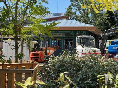 In the “old part” aka World Premiere Plaza, metal structures are being built for new permanent food kiosks which hopefully will mean GOODBYE food trucks. It’s no longer a “working studio” so we should have “mobile catering”.