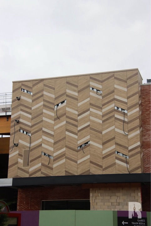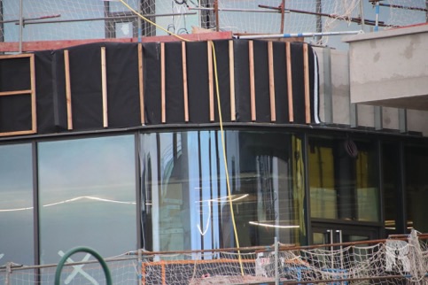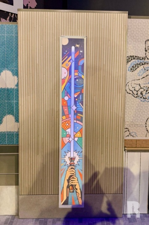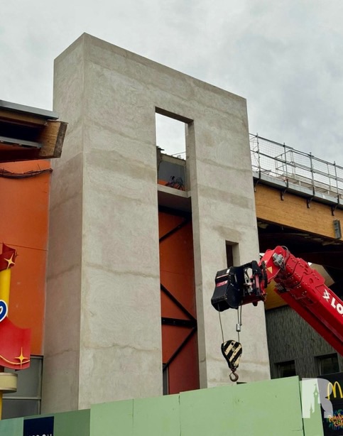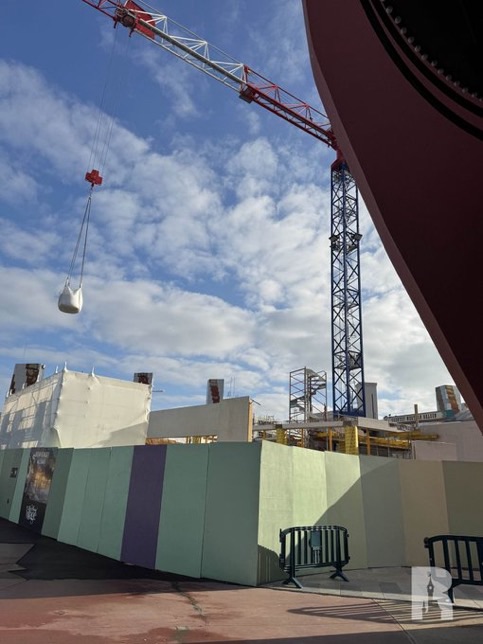 And the support structure is in place for this huge building-height Star Wars Lightsaber artwork to be installed on the side of the future Disney Wonders shop. Kind of excited to see how this turns out.