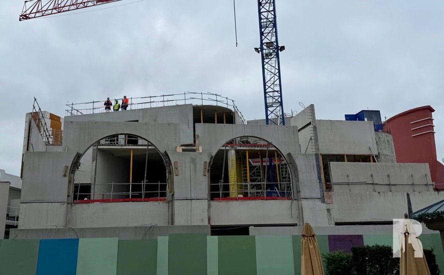In Walt Disney Studios Plaza, decent progress has been made on the ticketing + guest services + baby care complex remodel which has been completely redesigned for increased capacity an efficiency ahead of the Disney Adventure World opening.