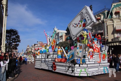 On all the floats but mostly the new one, additional colorful props were added with some new references, like Nightmare Before Christmas, Chicken Little, and Kermit the Frog.