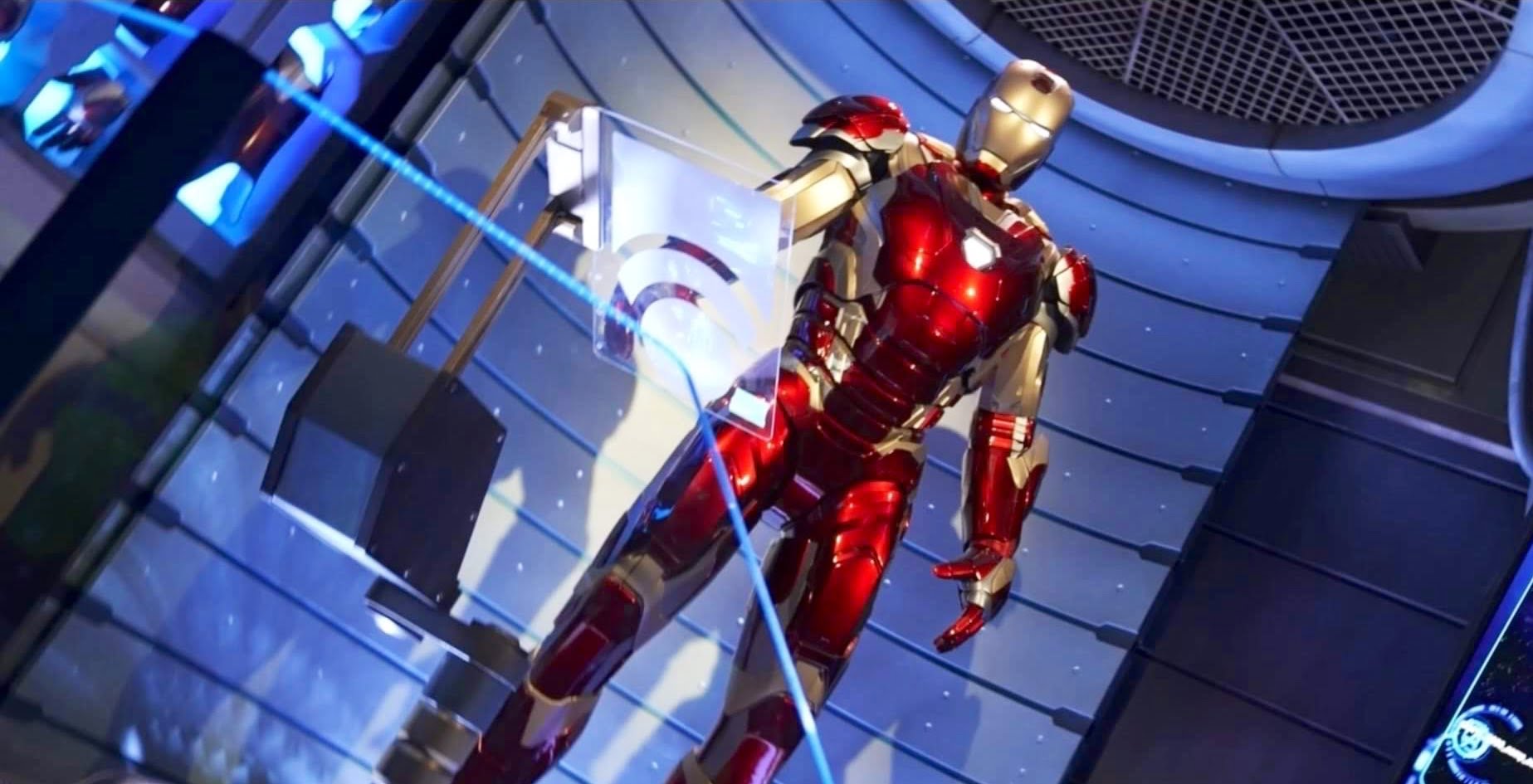 The Avengers Assemble: Flight Force preshow featuring the Iron Man Animatronic.