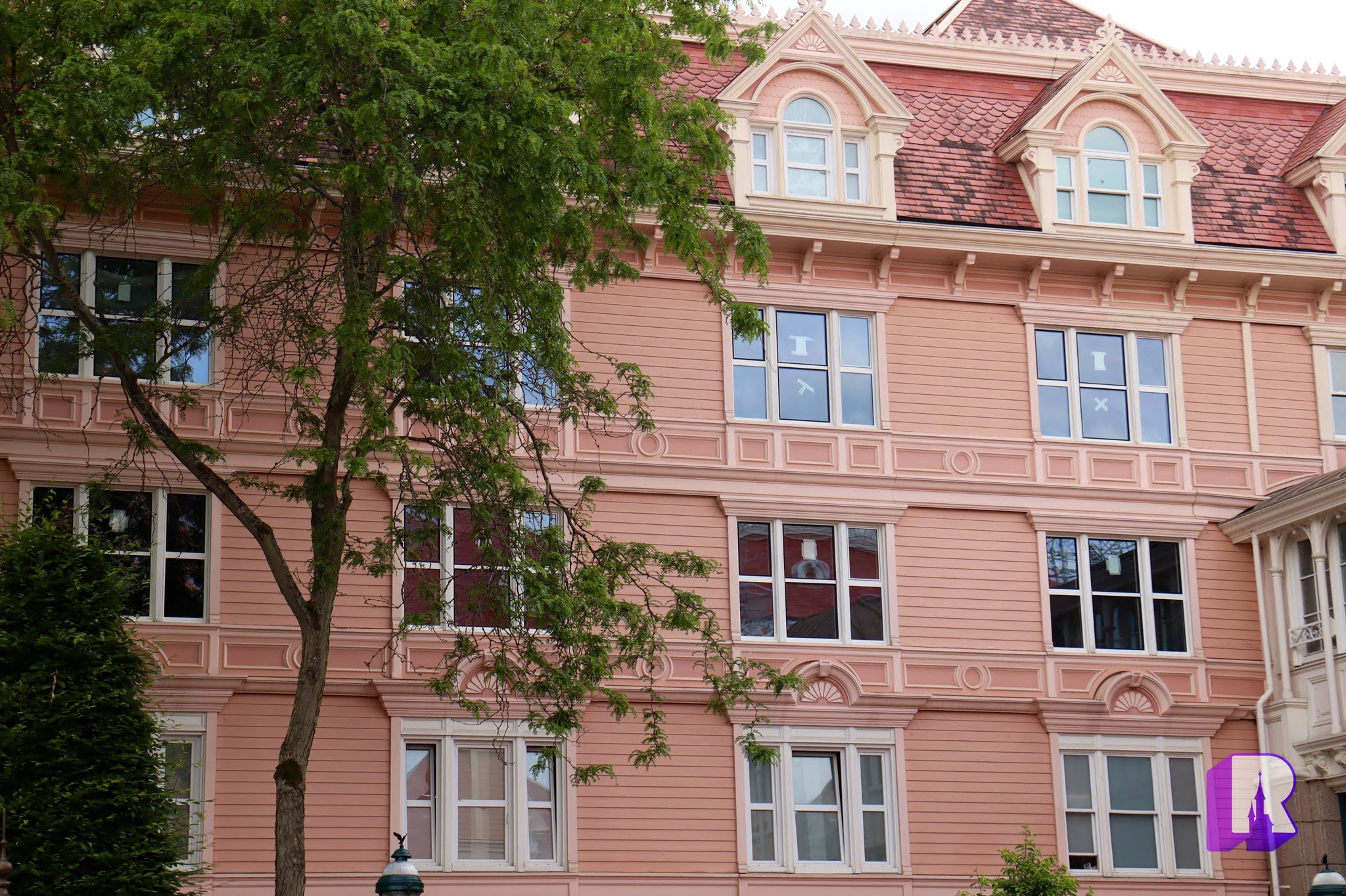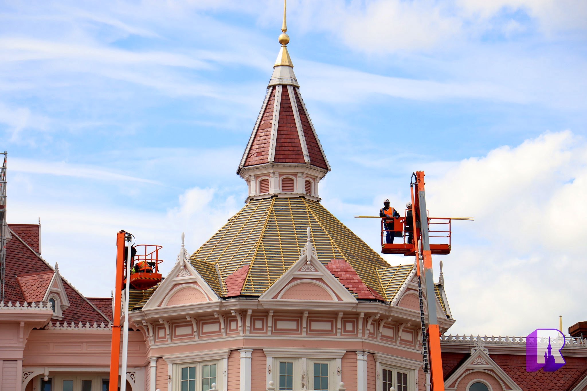 Our check on the Disneyland Hotel of course where works continue on the roofs and facades including new windows.
