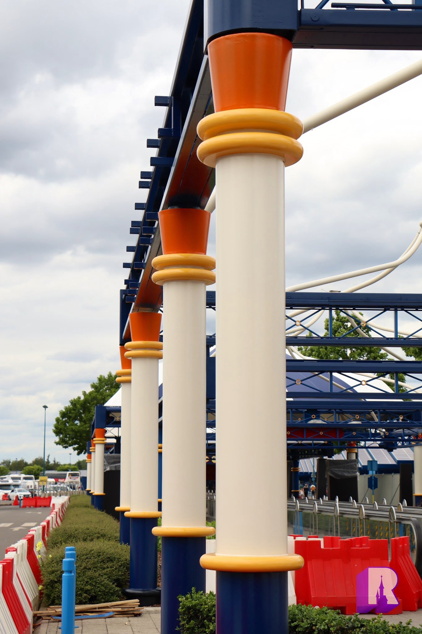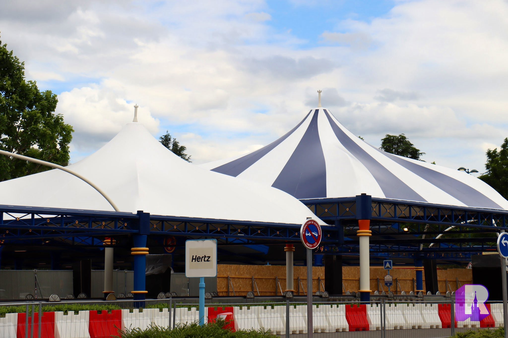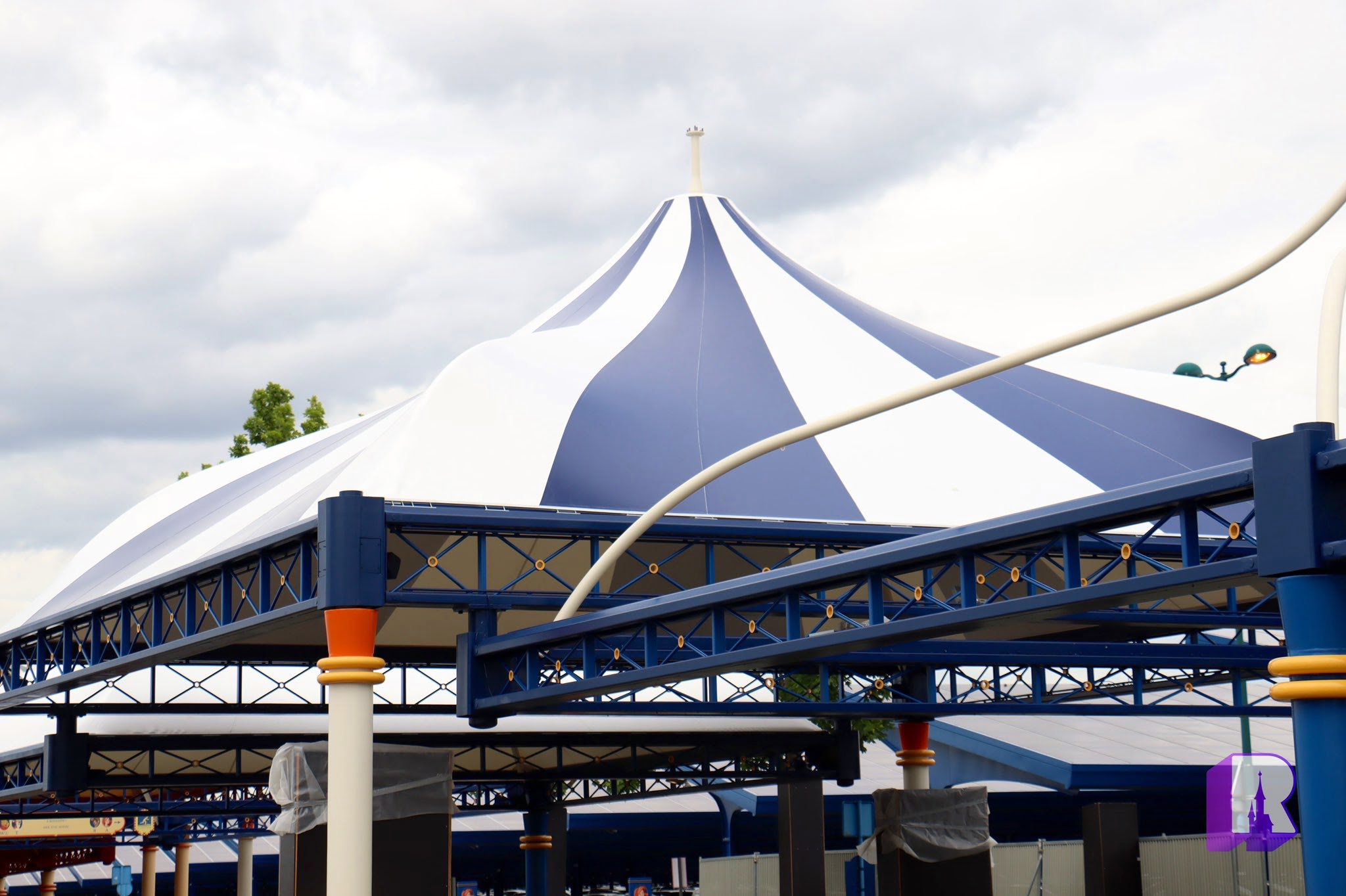 Heading to Guest Parking, the new tents have started to arrive! The pillars are also being repainted in the new color scheme and signage is returning.