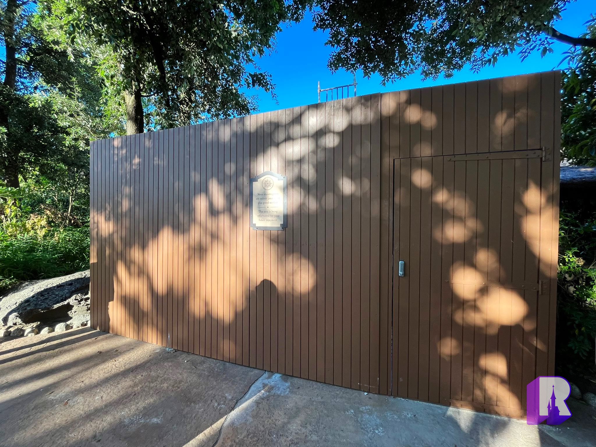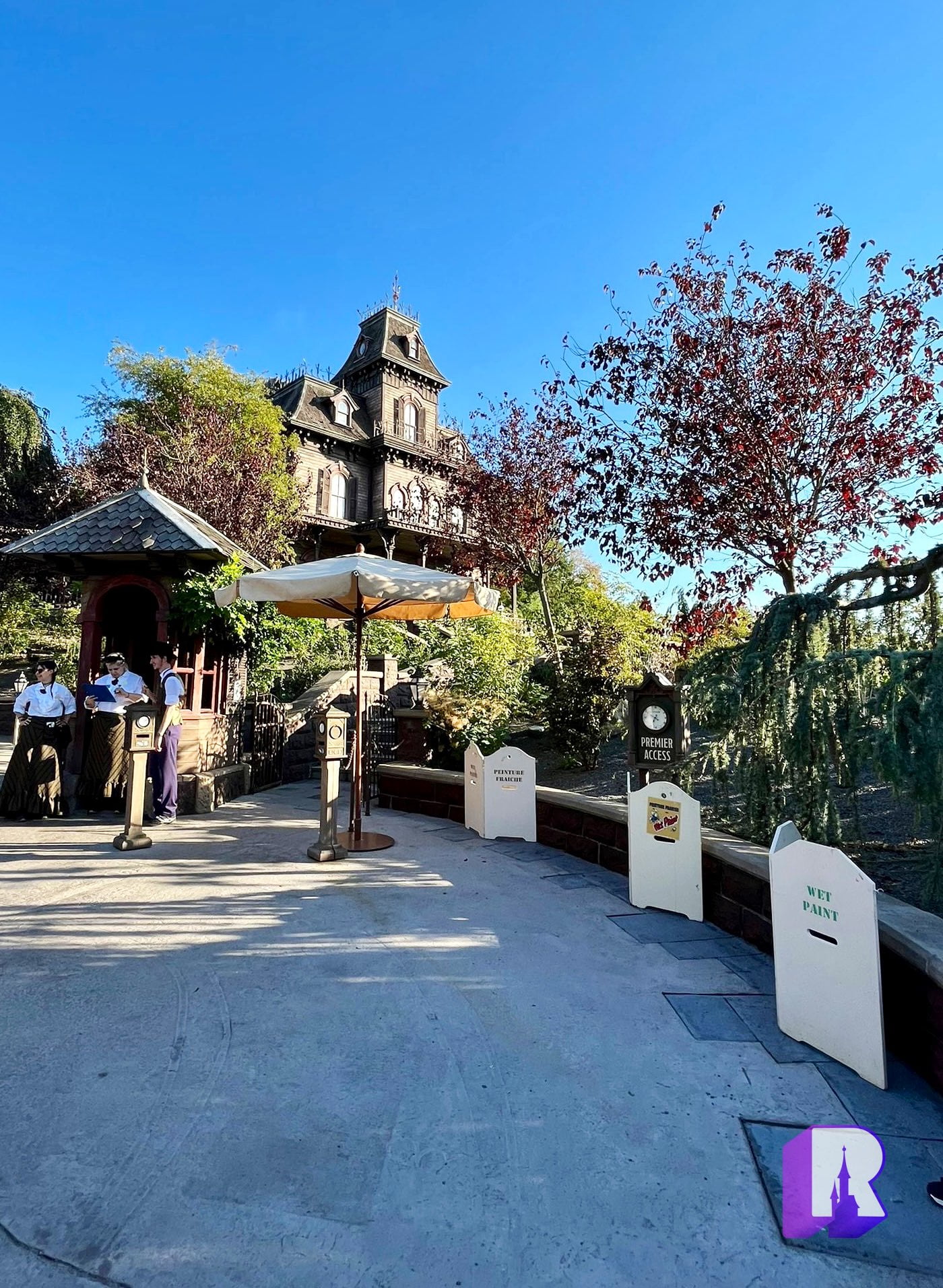 Remember that weird new camouflage pillar at Phantom Manor ? turns out it was for année set of safety fences on the “chicken exit” side of the attraction. They are now in place! I guess Guests could climb in or out of the set (or even the park?) through this area.