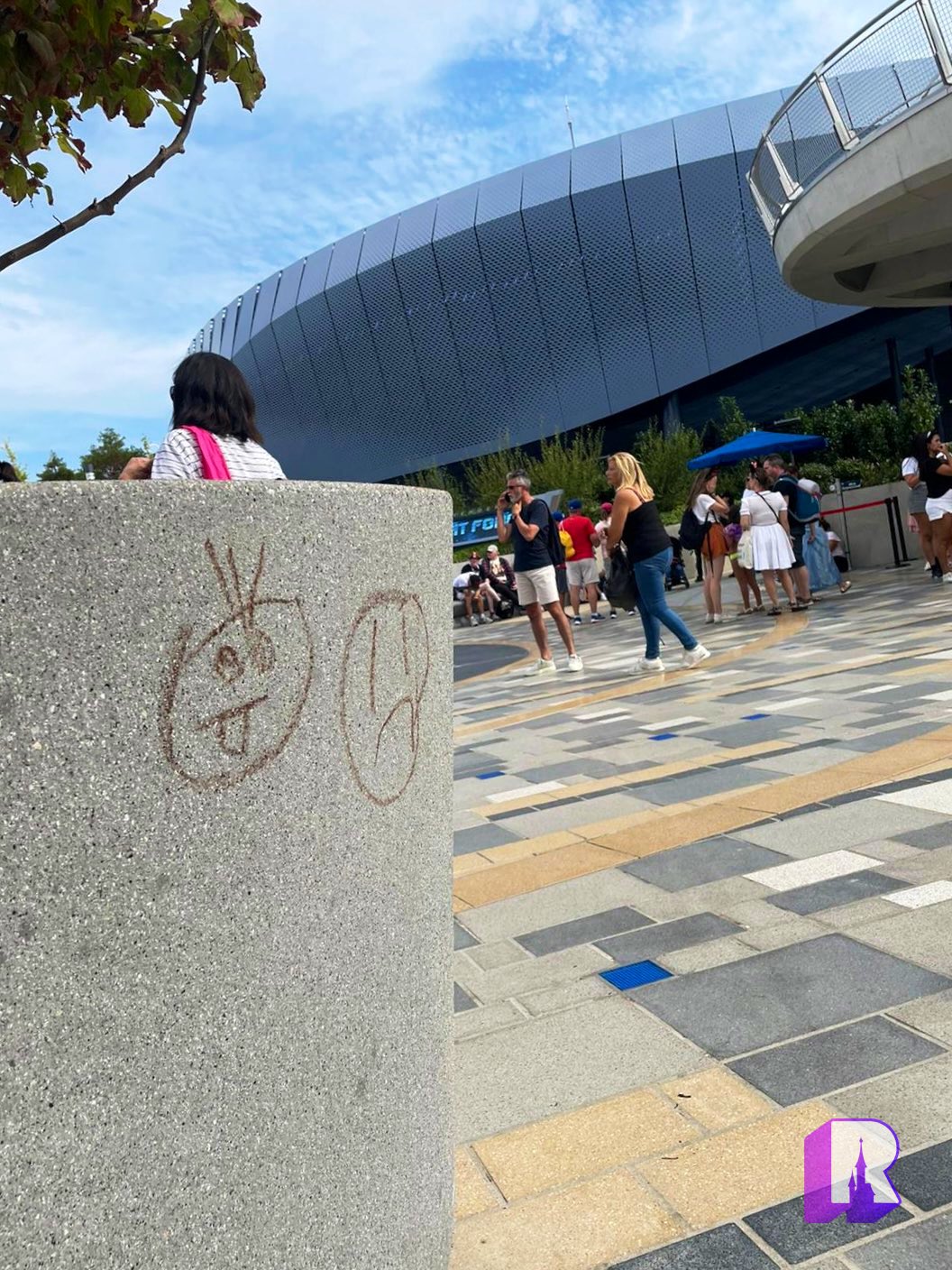 Inside the land, bad Guest behavior continues, but in this instance we’ve gotta thank the custodial team who cleaned up these scribbles very quickly.