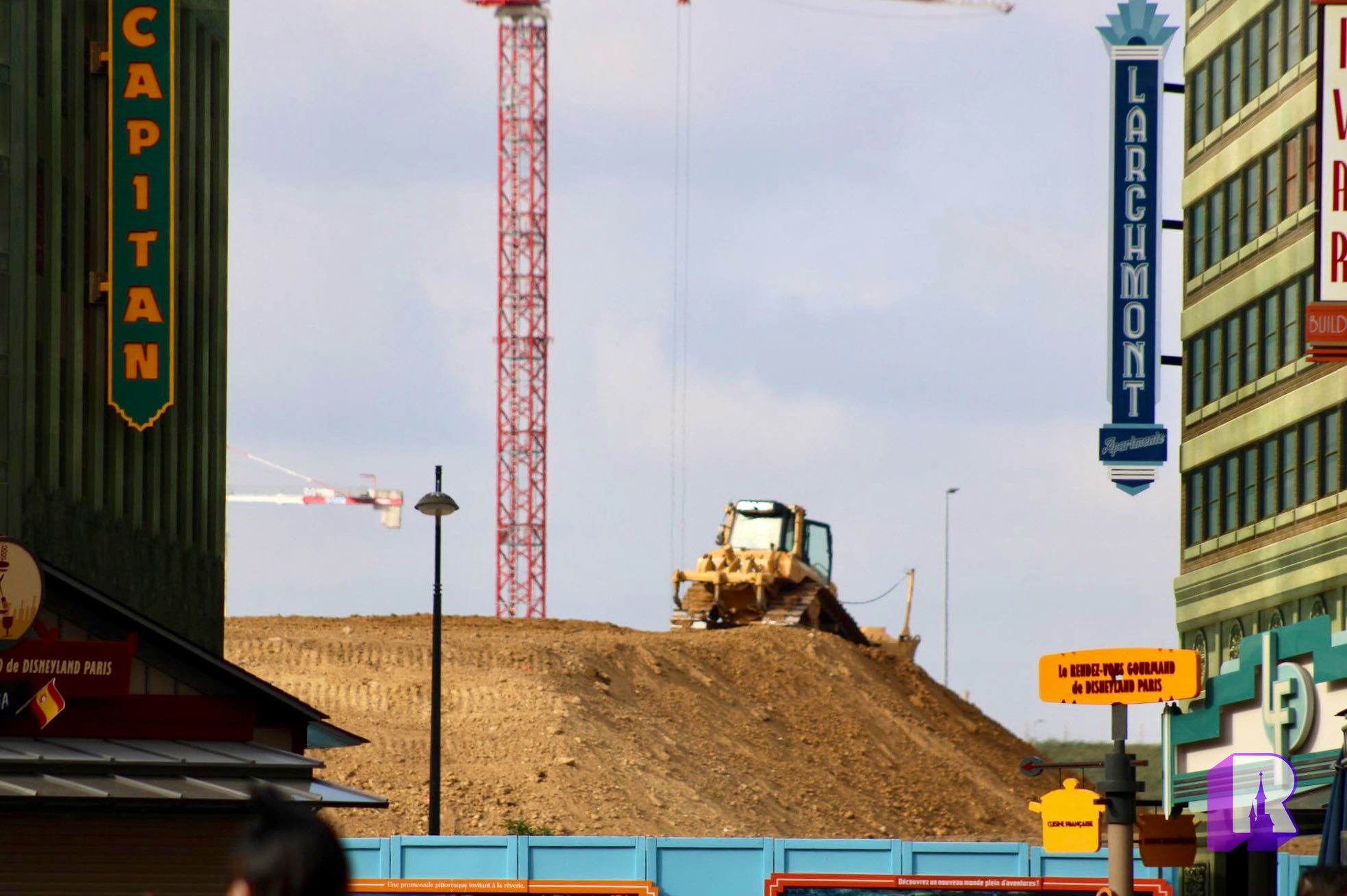Starting at Walt Disney Studios Park where the expansion project is moving along nicely! A huge temporary pile of dirt has been made at the end of Hollywood Blvd. And it’s a look.