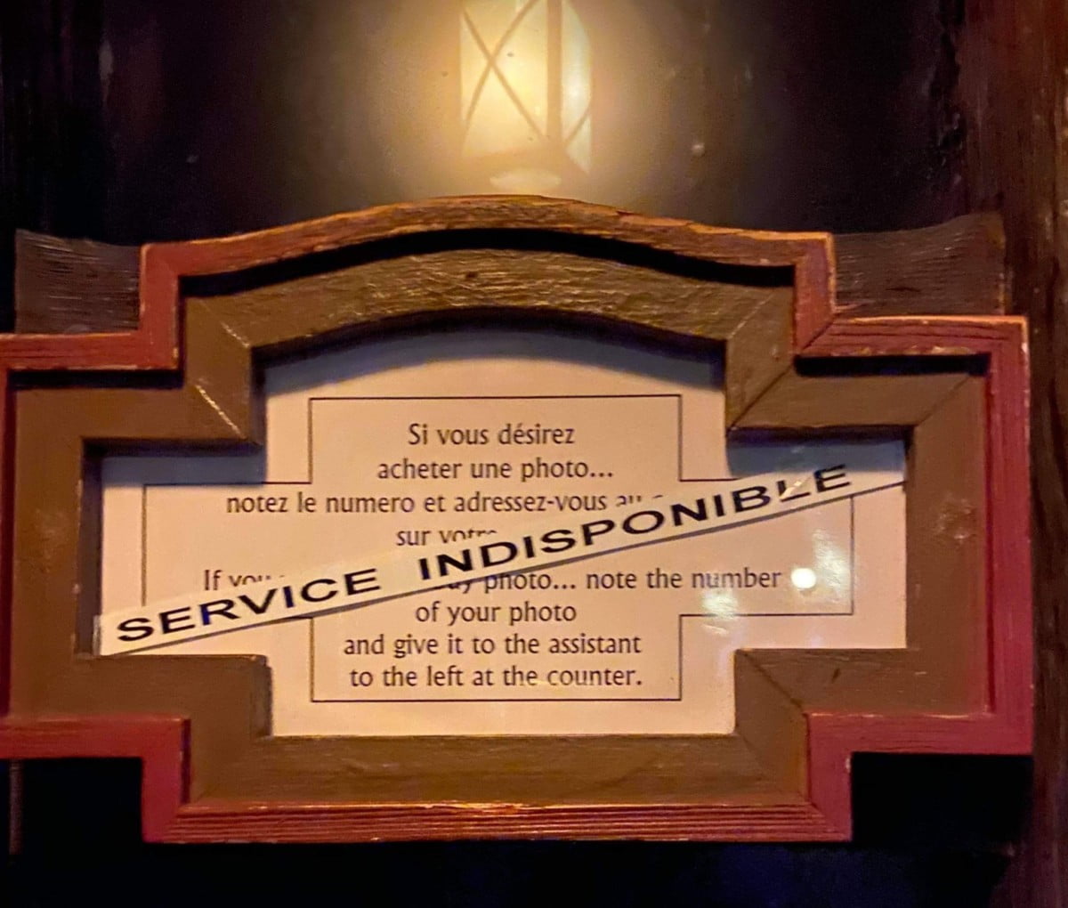 The Pirates of the Caribbean ride photo system is completely shit down (I’m not gonna correct that typo) either because of safety in the viewing area or a breakdown.