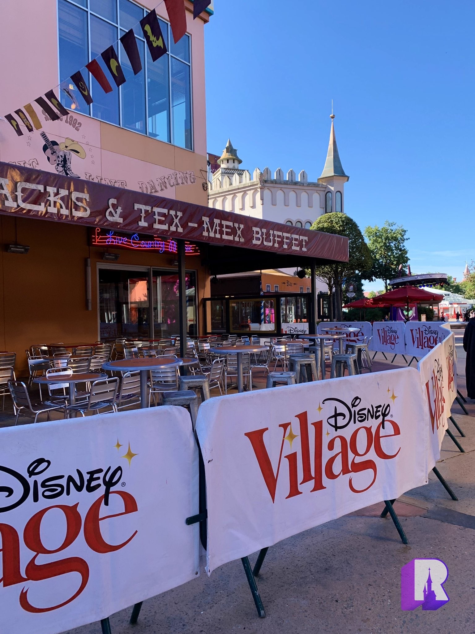 Two more updates from outside the Parks: at Disney Village, the Billy Bobs terrace was expanded and has now received more tables. It looks horrific but hey that’s Disney Village! And over at Guest Parking, the Infinity preferred parking has moved to the Tigger lot while works are carried out to installed the solar panel in this area.