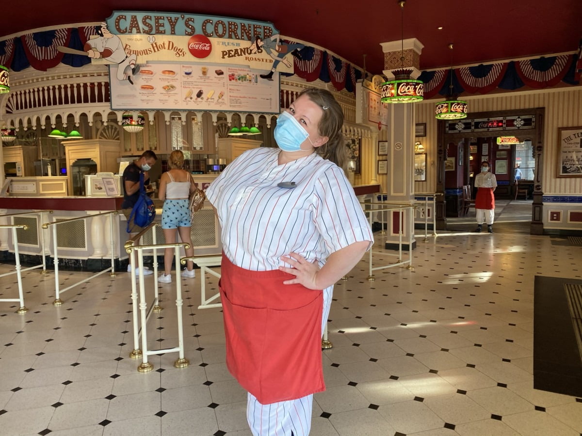 Cast Members do a good job at reminding everyone to cover their mouth and nose, and to use hand sanitizing gel (they are literally at every corner).