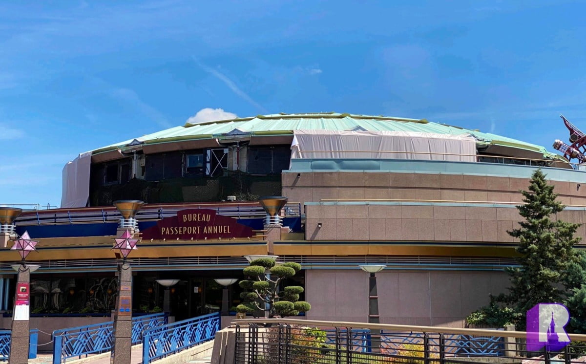 Buzz Lightyear Laser Blast’s refurbishment is still ongoing until the fall, and a tarp was installed on the Central Plaza side of the building as it was completely stripped: