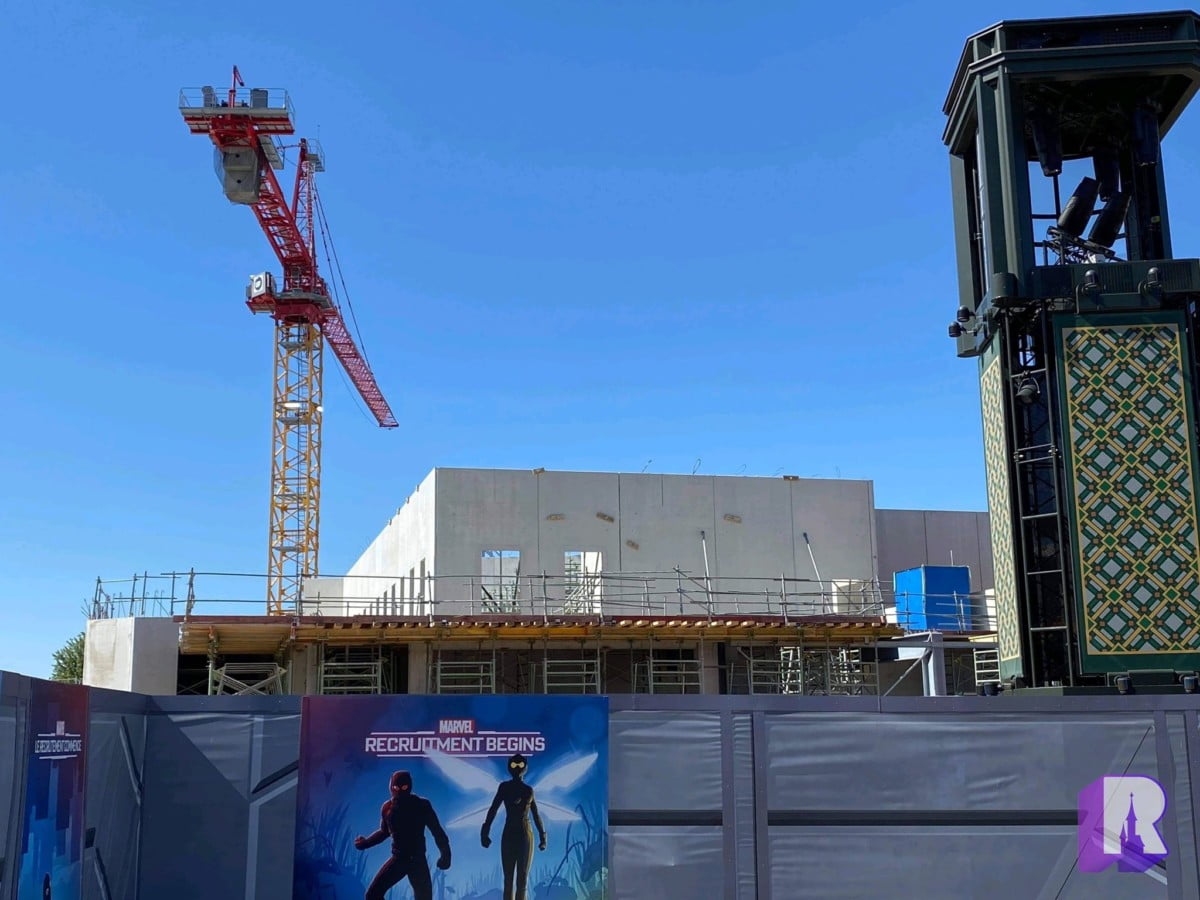 Over at Walt Disney Studios Park, progress is noticeable on the Avengers Campus project, with the Spider-Man building growing and theming being prepared for application at the Iron Man Coaster: