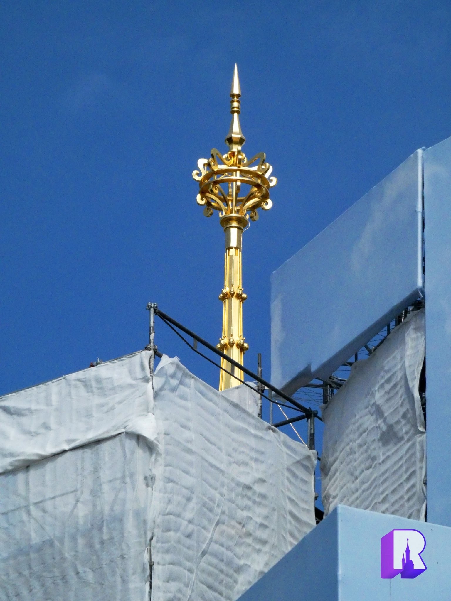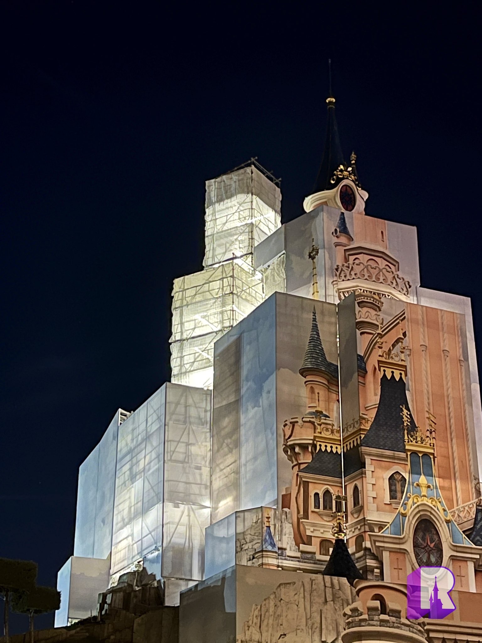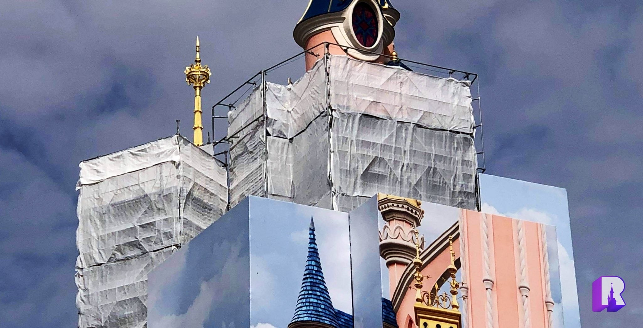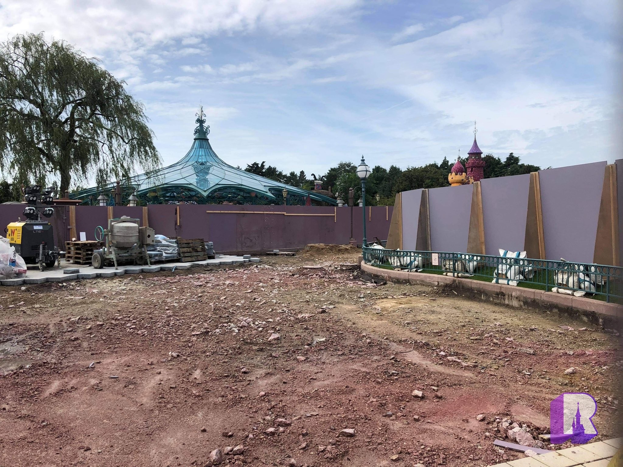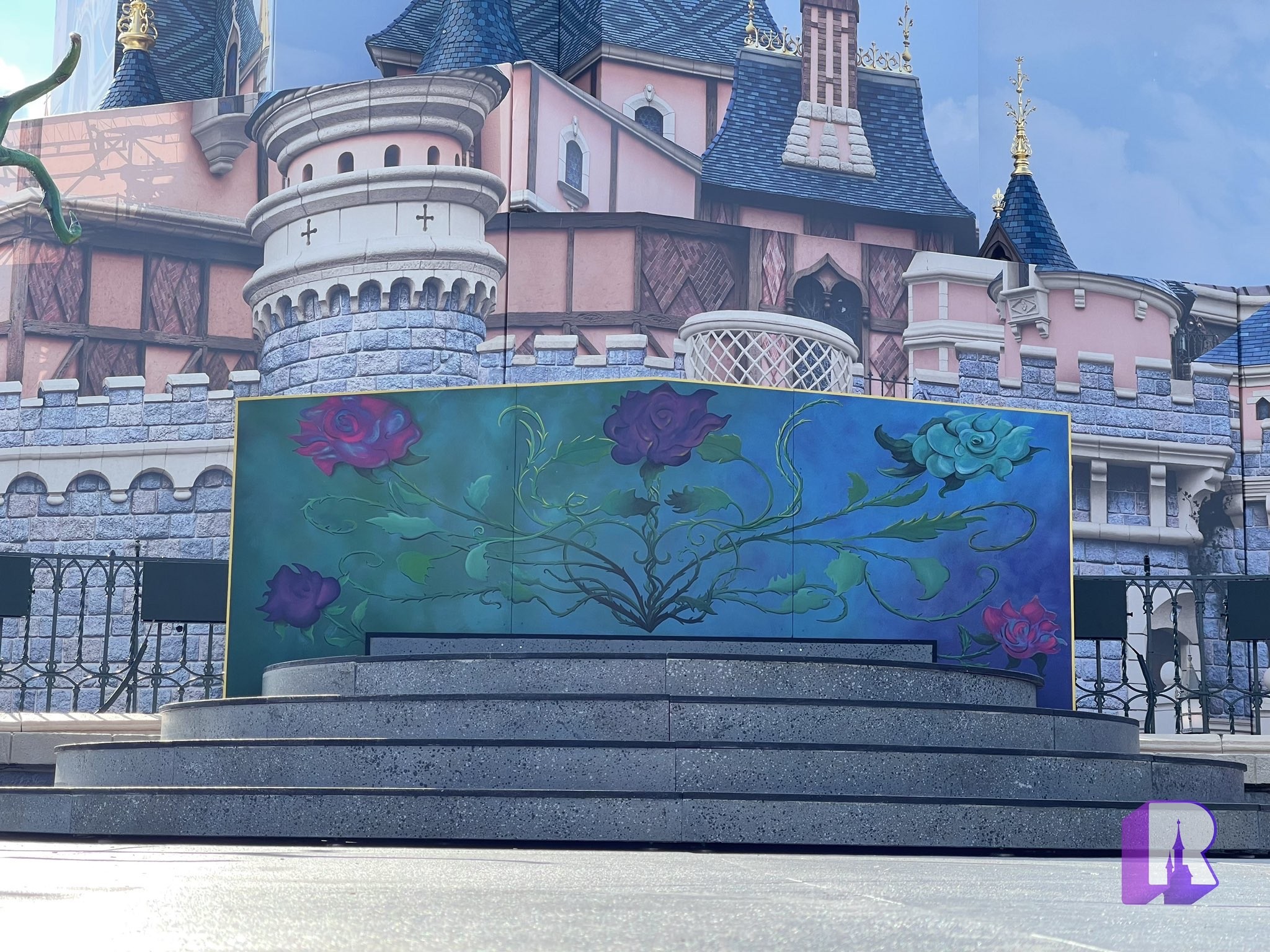 We start at Sleeping Beauty Castle which had started to reveal itself slowly! Some of the sparking spires are out of the box, and the themed tarp has been removed in parts.