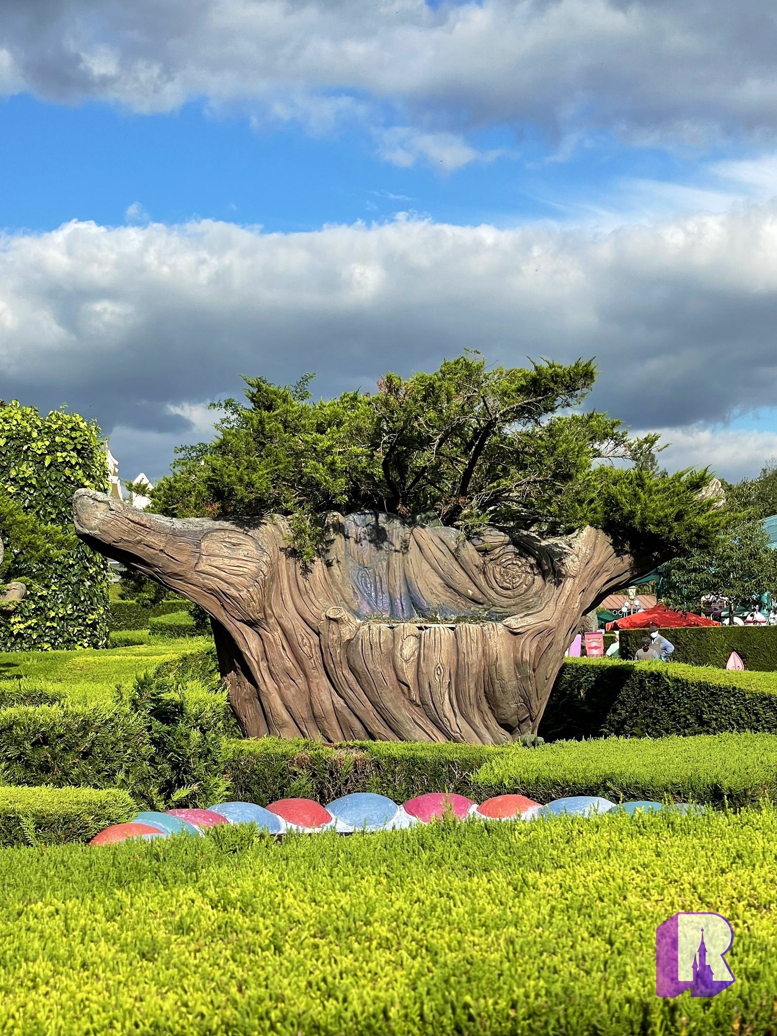 Heading to the Resort Hub for a look at the new permanent security gates. They’ll be green metal, marching Fantasia Gardens. Cannot wait for this!