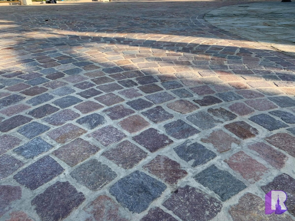 The area is now paved with more modern composite stone pavers that look sleek and lighten up the plaza.