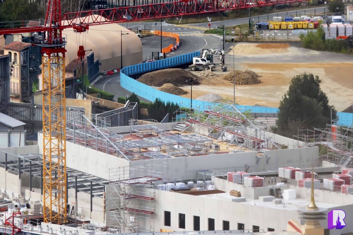 We start at Avengers Campus seen from the sky thanks to our pals at Panoramagique! The foundations for the impressive Iron Man Coaster entrance seem complete. We’re now gonna have to lookout for the metallic structure to arrive in the next few months!