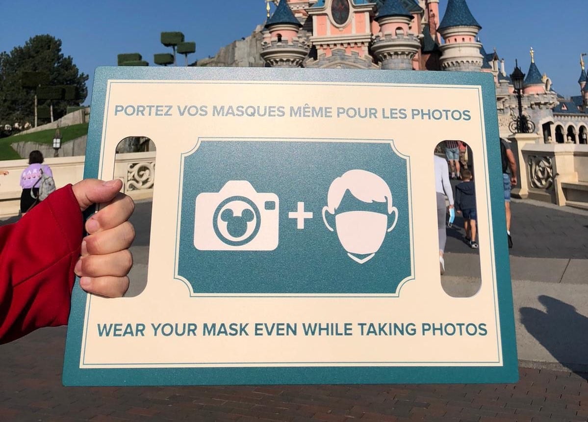 In Central Plaza, Cast Members now have a new sign to remain guests to keep their masks on when taking photos: