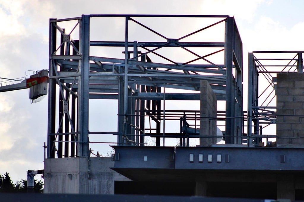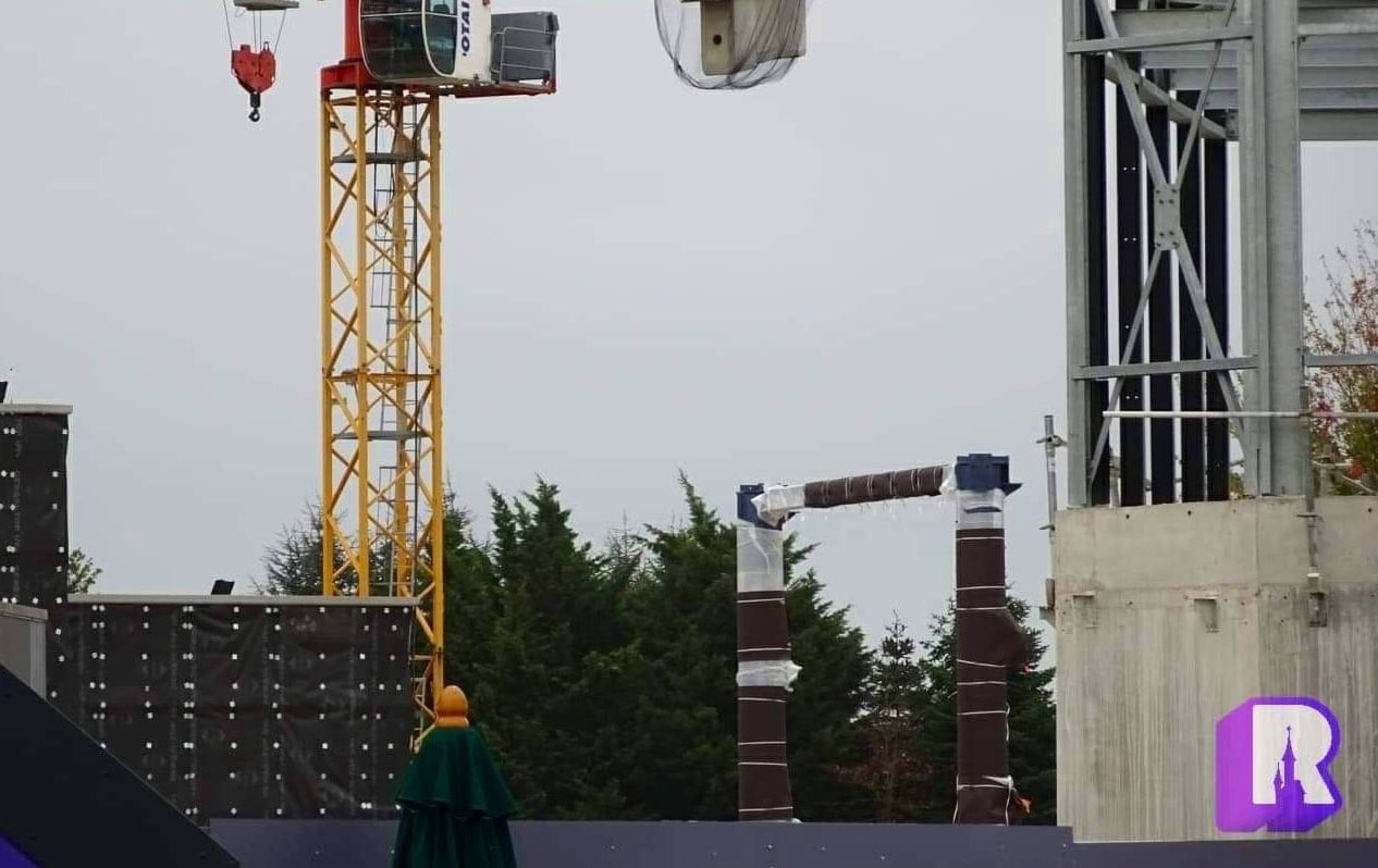 Over at Walt Disney Studios Park, progress continues at Avengers Campus, with the first pillars for the Iron Man Coaster entrance awning: