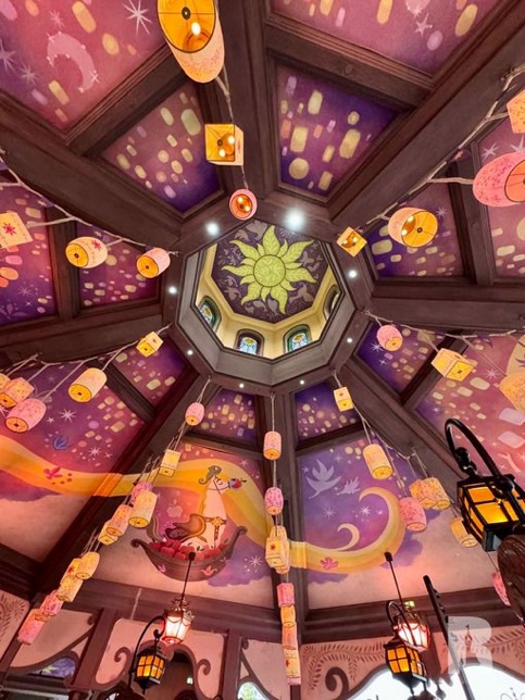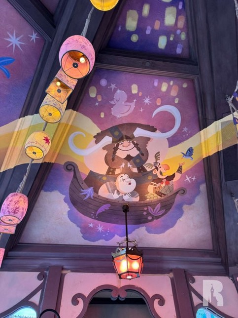 Lors de notre visite, nous avons pu observer de près le bâtiment du spectacle pour “Raiponce Tangled Spin”, orné de superbes fresques.