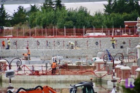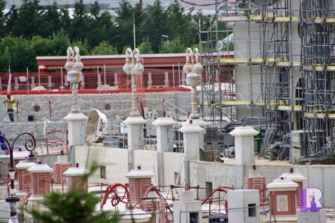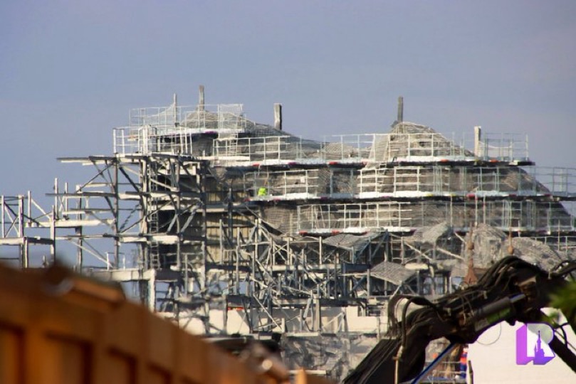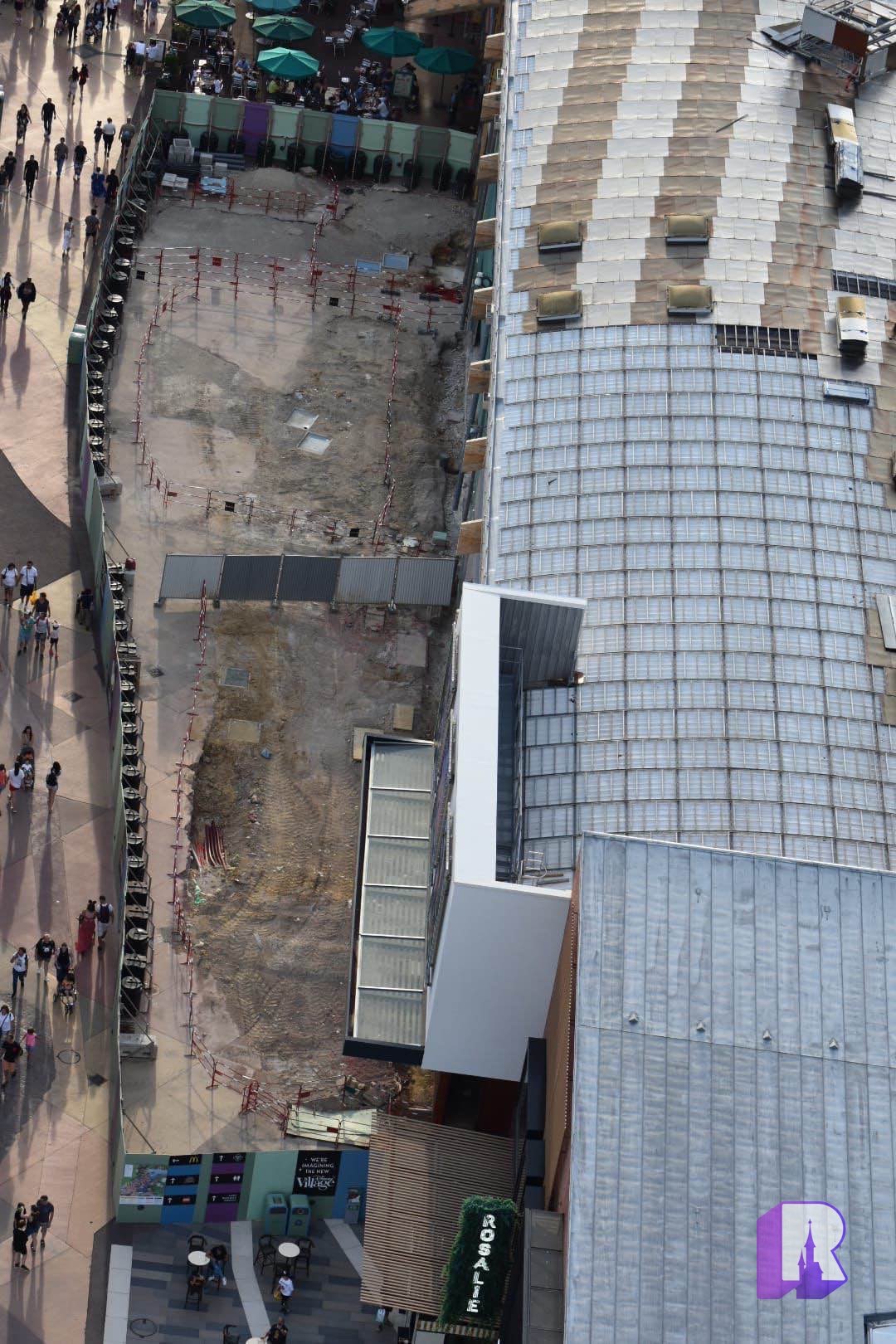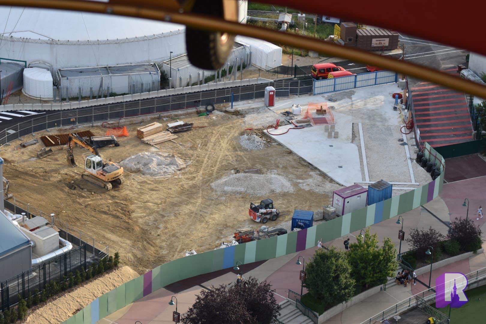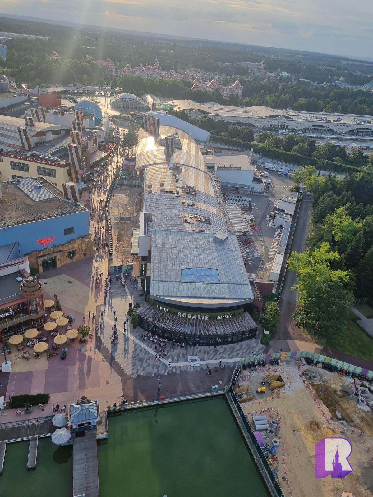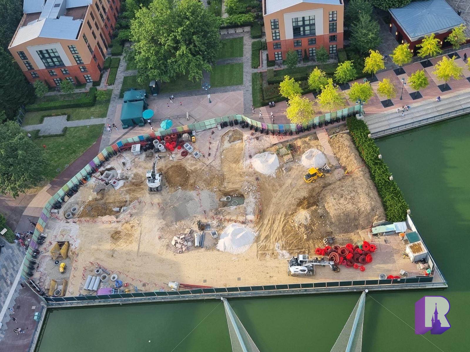 Au Disney Village, les travaux avancent pour les nouvelles boutiques, la zone libérée pour le McDonald’s et la terrasse au bord du lac.
