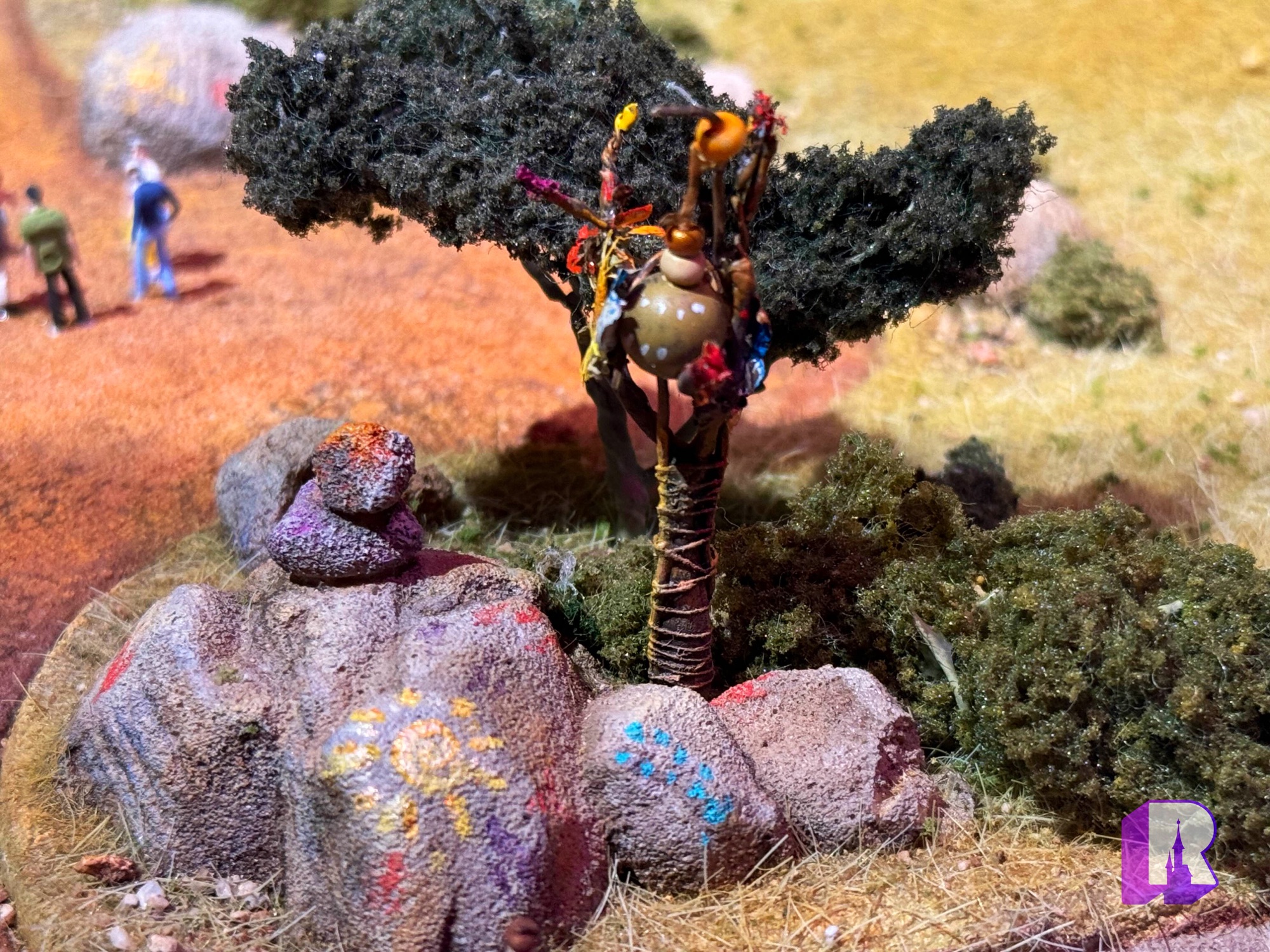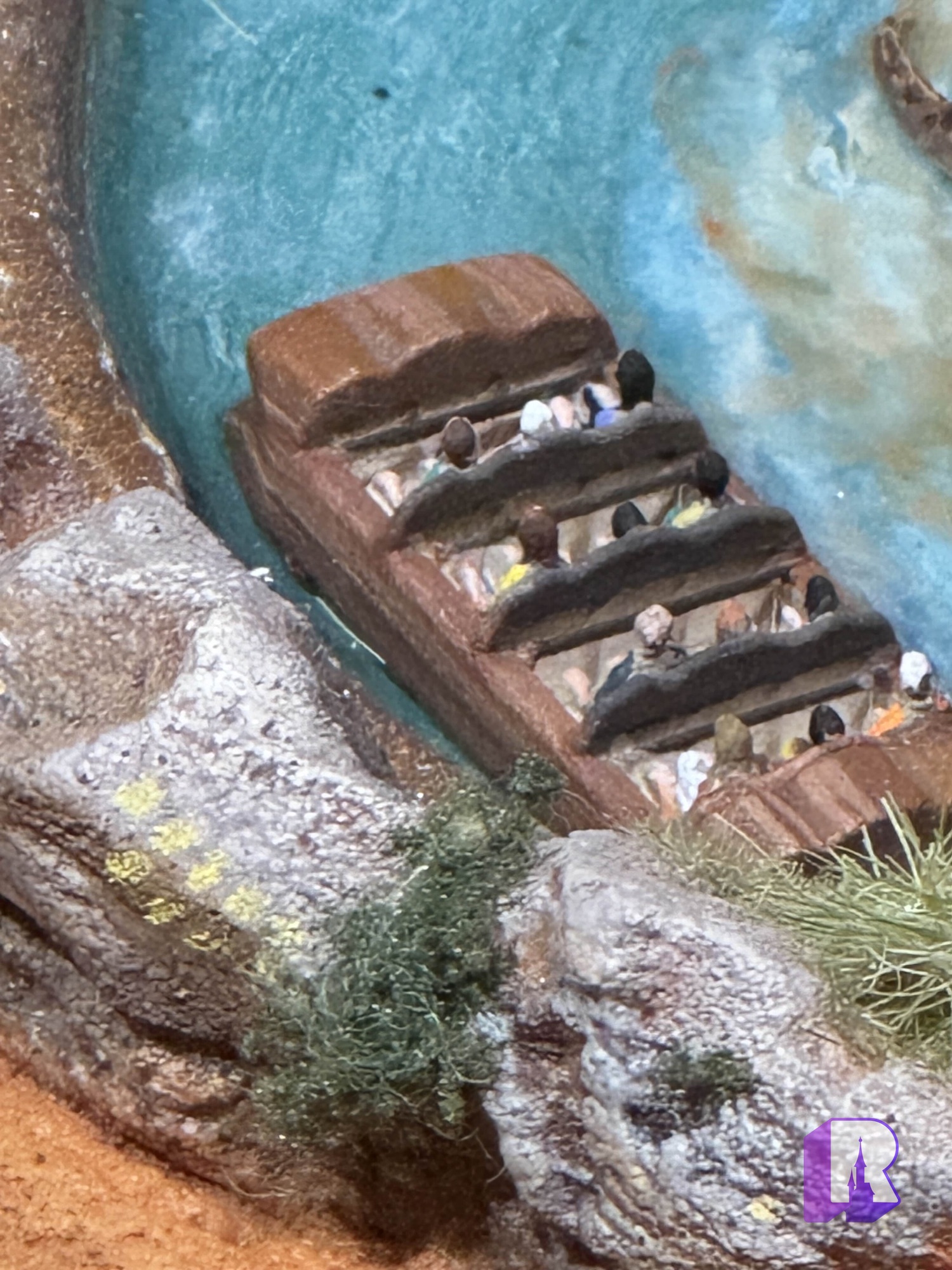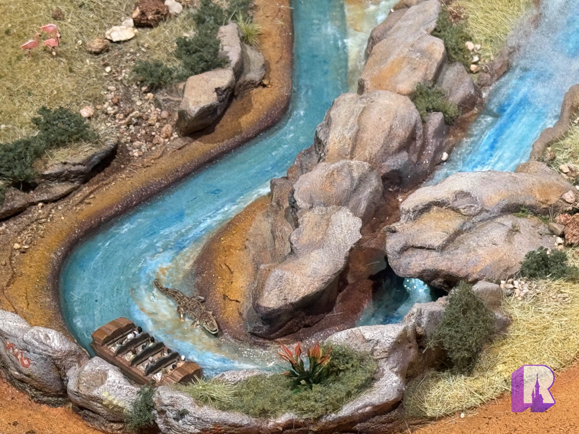 Le modèle présentait des détails sur les véhicules du ride, les marquages sur les arbres, et les zones de restauration et de boutiques. Cependant, l’absence notable d’ombre dans cette représentation nous laisse perplexes, est-ce que la zone sera supportable en été ? Ce serait cependant très « thématique » de mourir de chaud dans la savanne… Bien joué aux équipes!