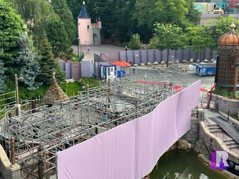 À Fantasyland, de nouvelles sections de pavés ont été dévoilées, bien que leur qualité rende leur nettoyage visiblement difficile.