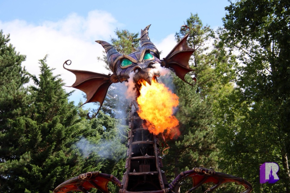 Maléfique, le dragon de la Disney Stars on Parade crache à nouveau du feu après une assez longue interruption.