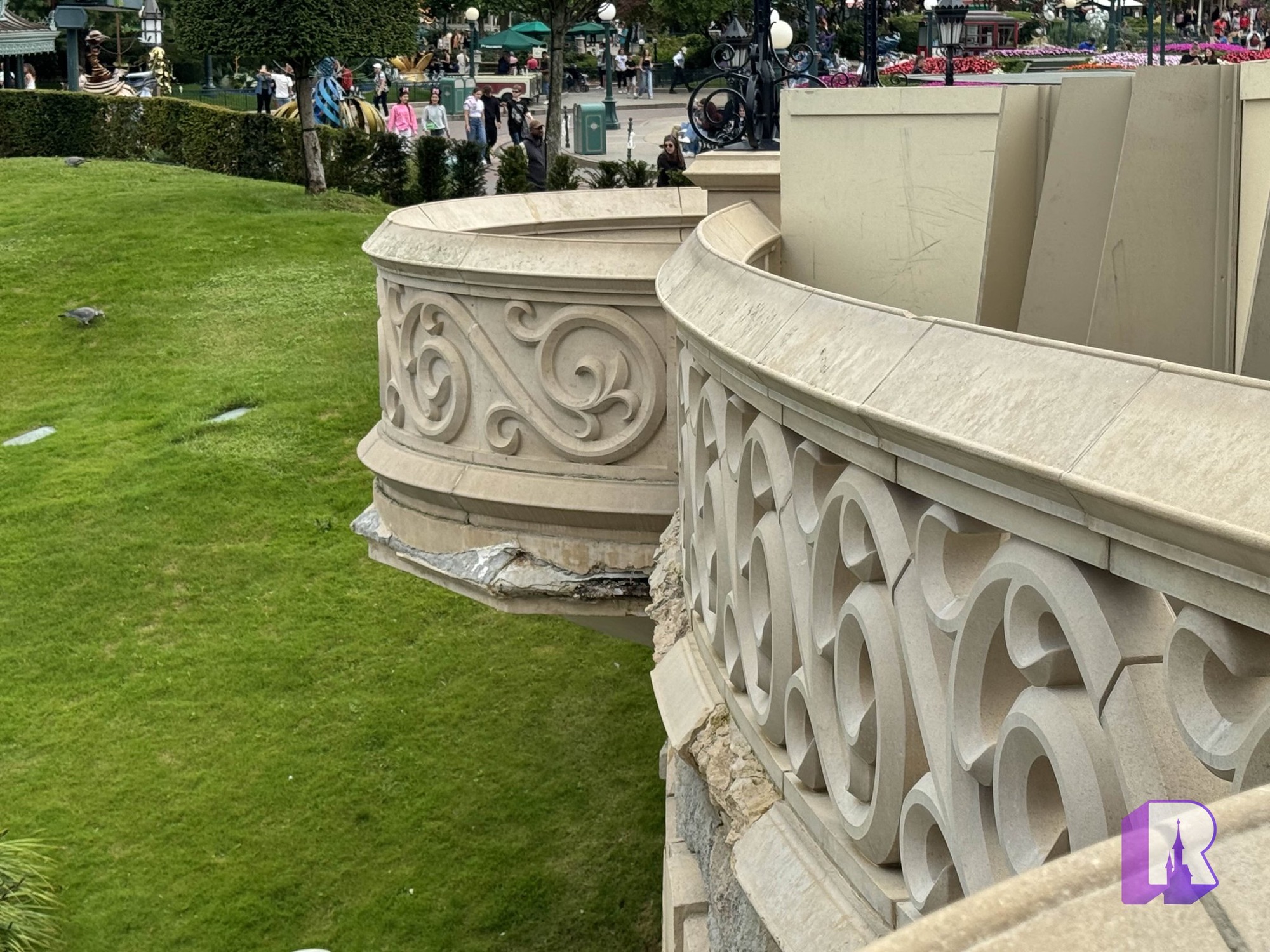 Au Disneyland Park, des palissades ont été installées sur l’un des côtés du pont du Château de la Belle au Bois Dormant, qui montre des signes de détérioration et nécessite une restauration.